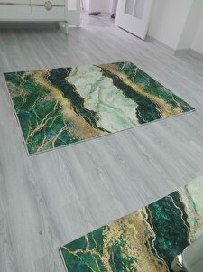 Yeşil Mermer Desenli Yıkanabilir Kaymaz Taban Leke Tutmaz Modern Salon Halı Yolluk Yeşil Mermer Desenli Yıkanabilir Kaymaz Taban Leke Tutmaz Modern Salon Halı Yolluk AYH298 160 x 230