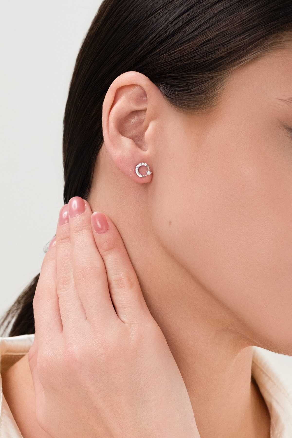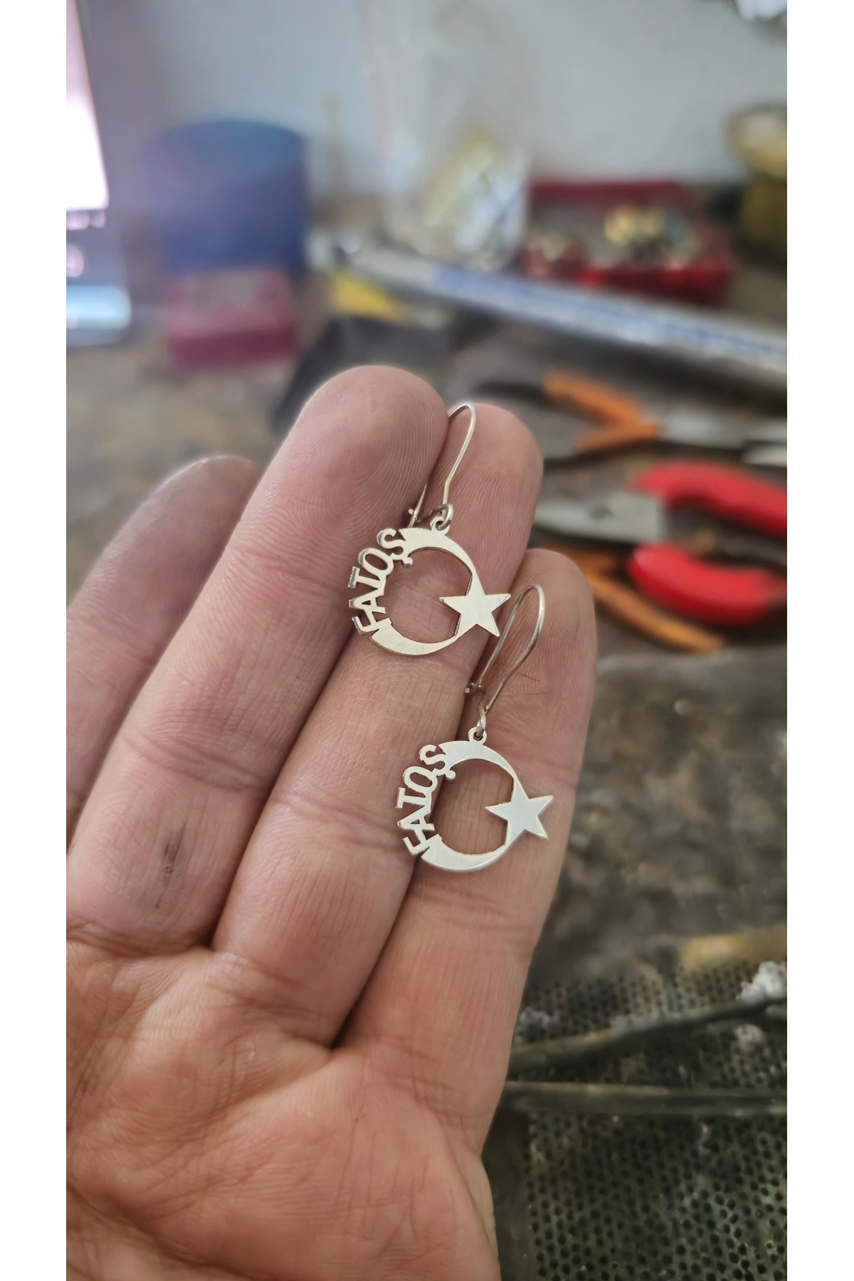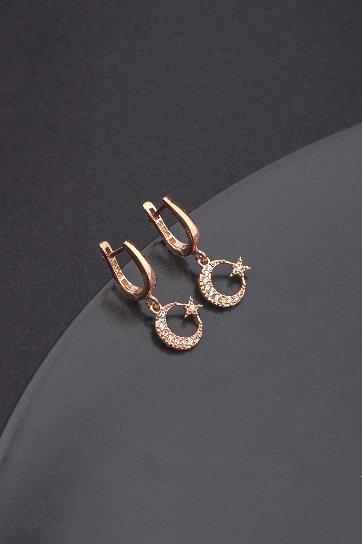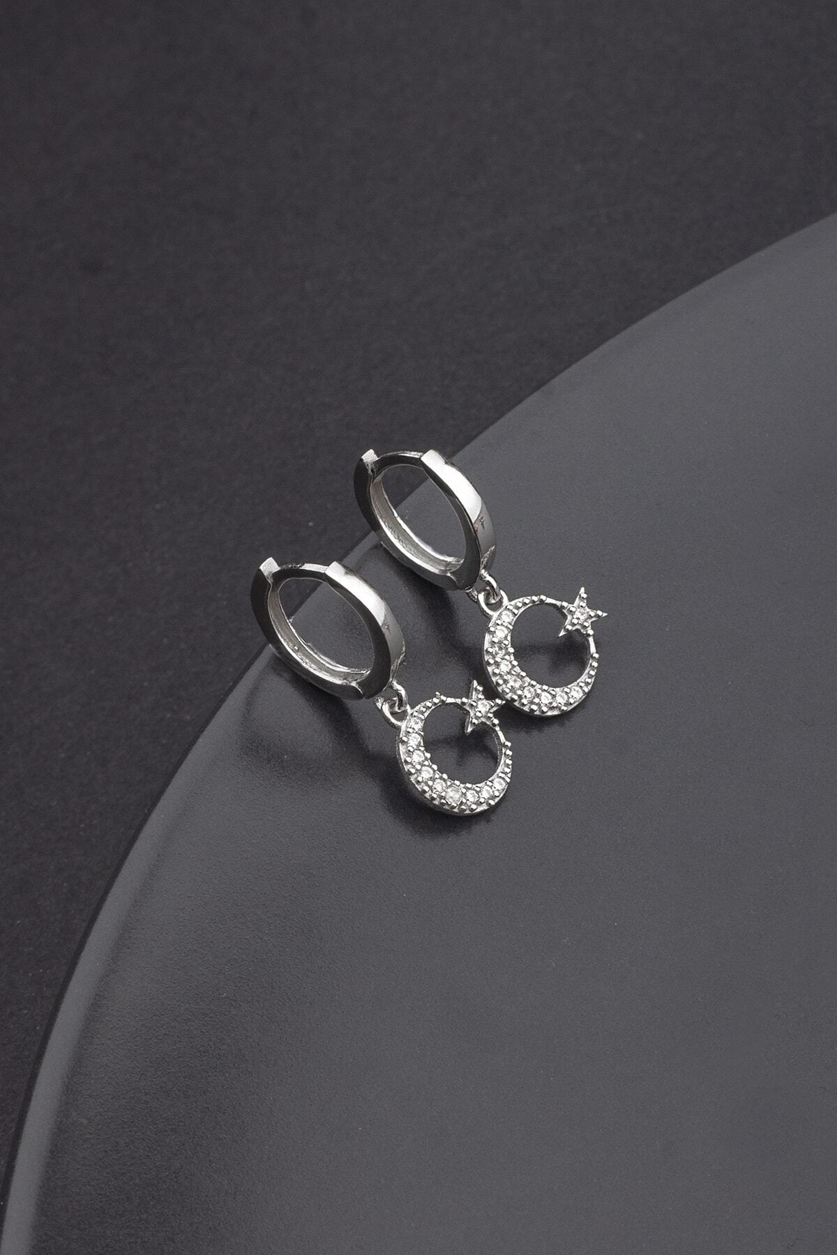 925 Ayar Gümüş Ay Yıldız Sallantılı Küpe 925 Ayar Gümüş Ay Yıldız Sallantılı Küpe Bys1291 تک سایز