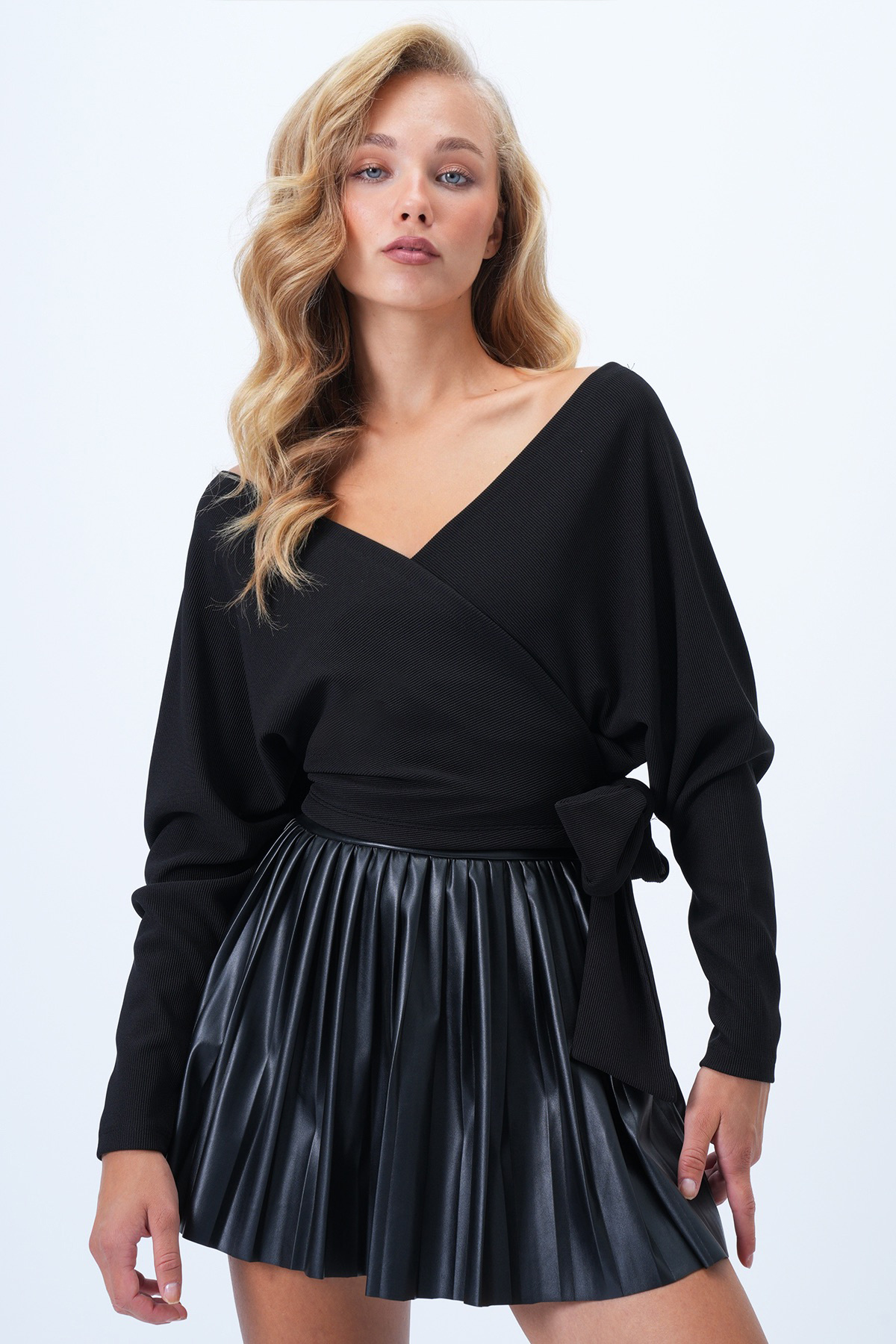 Kadın Siyah V Yaka Crop Örme Bluz UB00201 Kadın Siyah V Yaka Crop Örme Bluz UB00201 40