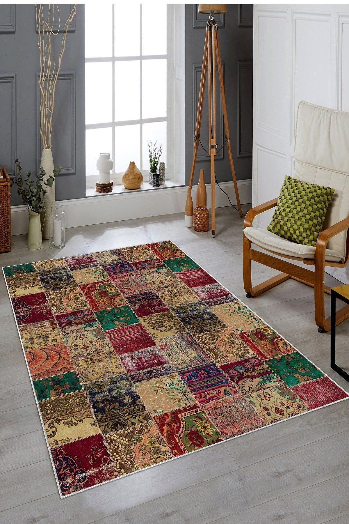 Mavi Vintage Desenli Yıkanabilir Kaymaz Taban Leke Tutmaz Modern Salon Halı Yolluk Mavi Vintage Desenli Yıkanabilir Kaymaz Taban Leke Tutmaz Modern Salon Halı Yolluk AYH332 160 x 230