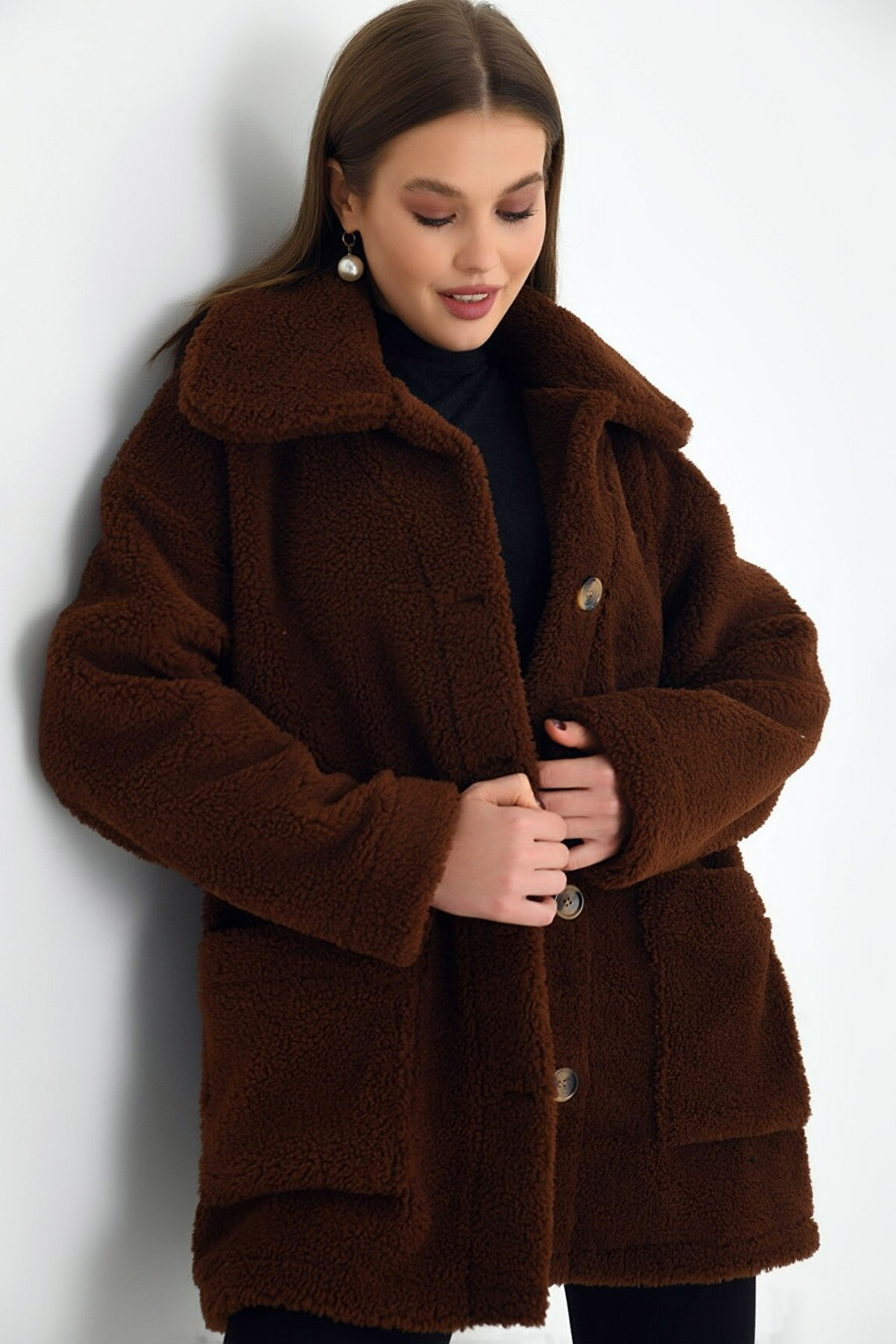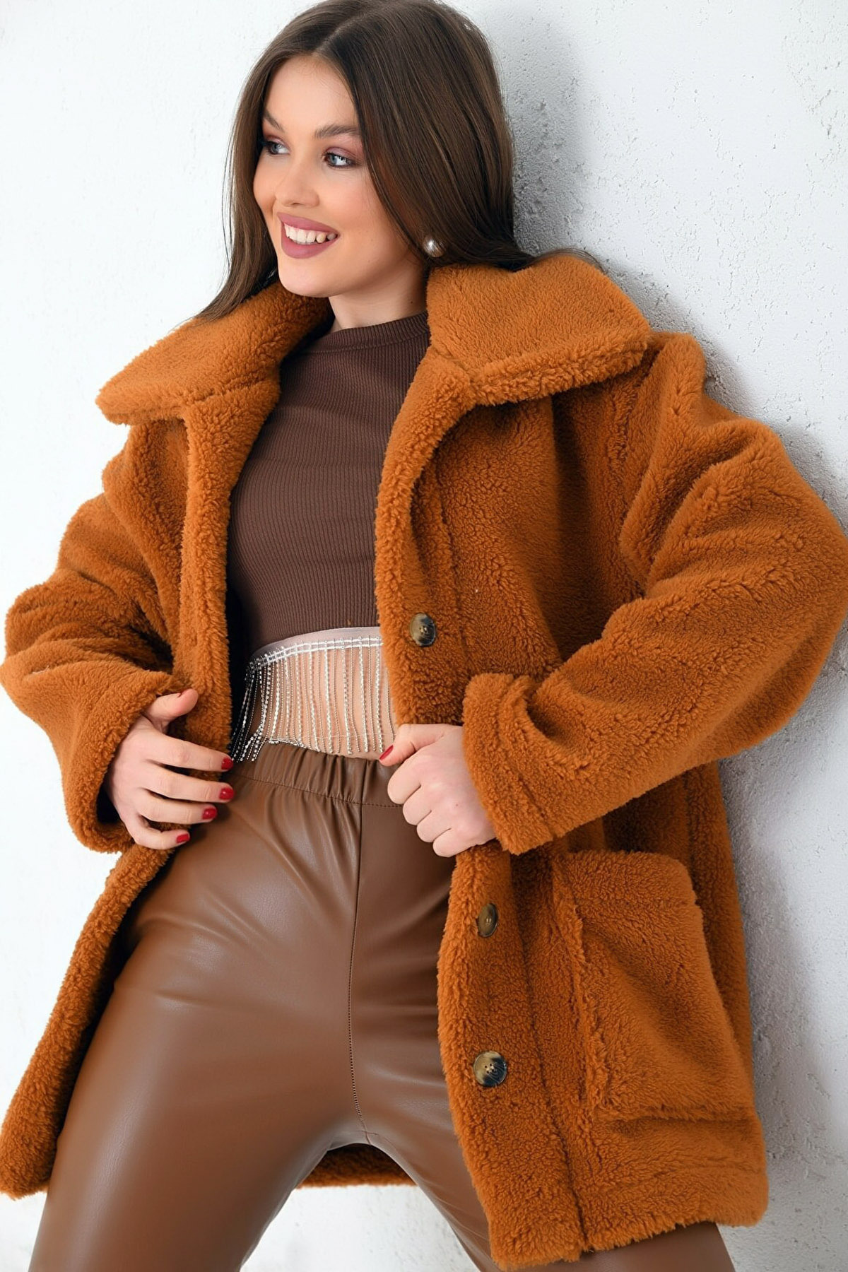 Geniş Yakalı Çift Torba Cepli Uzun Kollu Düğme Kapamalı Sıcak ve Yumuşak Basen Altı Peluş Mont Geniş Yakalı Çift Torba Cepli Uzun Kollu Düğme Kapamalı Sıcak ve Yumuşak Basen Altı Peluş Mont MKBL-1433 Standart