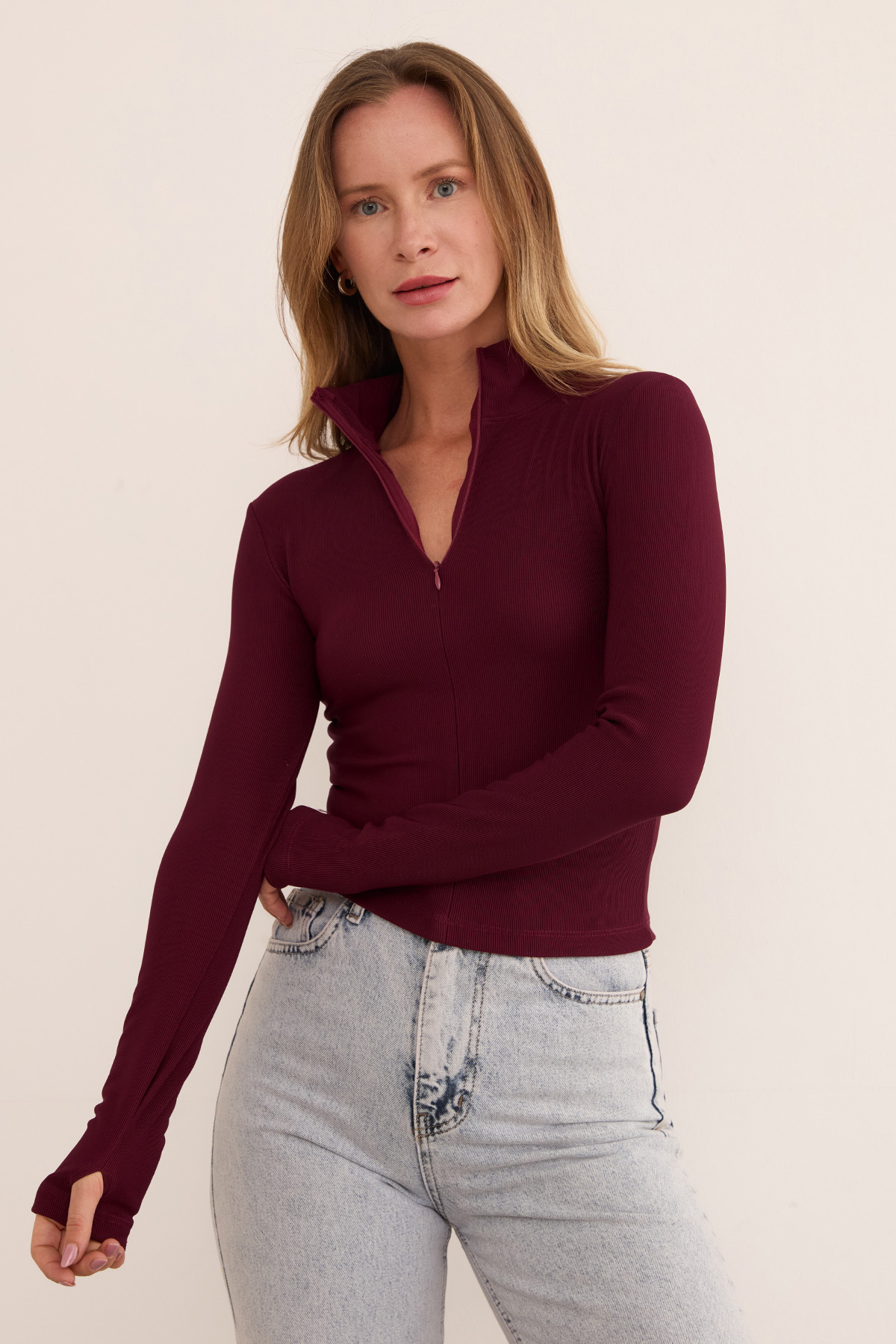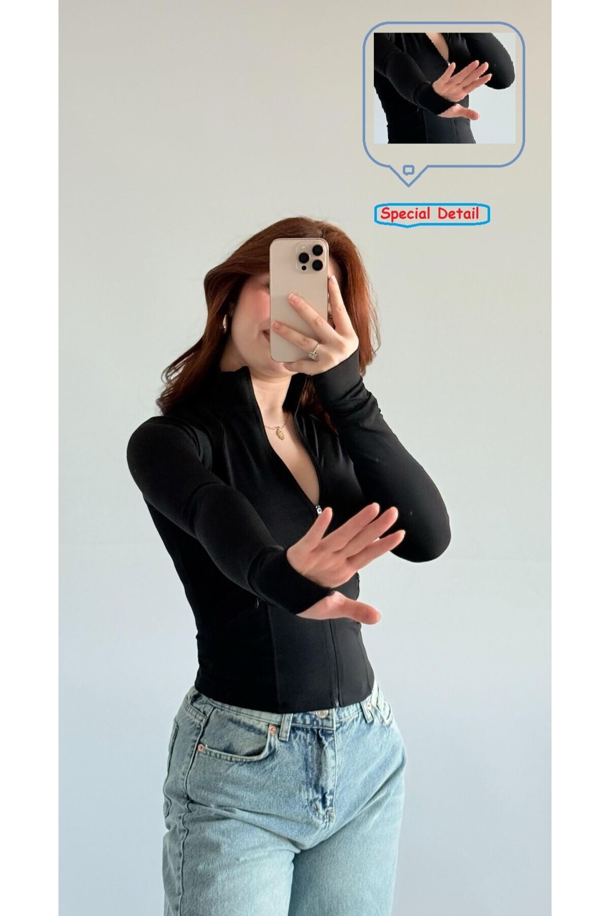 Kadın Lacivert Uzun Kol Fermuarlı Parmak Geçme Detaylı Dik Yaka Crop Top Bluz Kadın Lacivert Uzun Kol Fermuarlı Parmak Geçme Detaylı Dik Yaka Crop Top Bluz AJM9015 L/XL