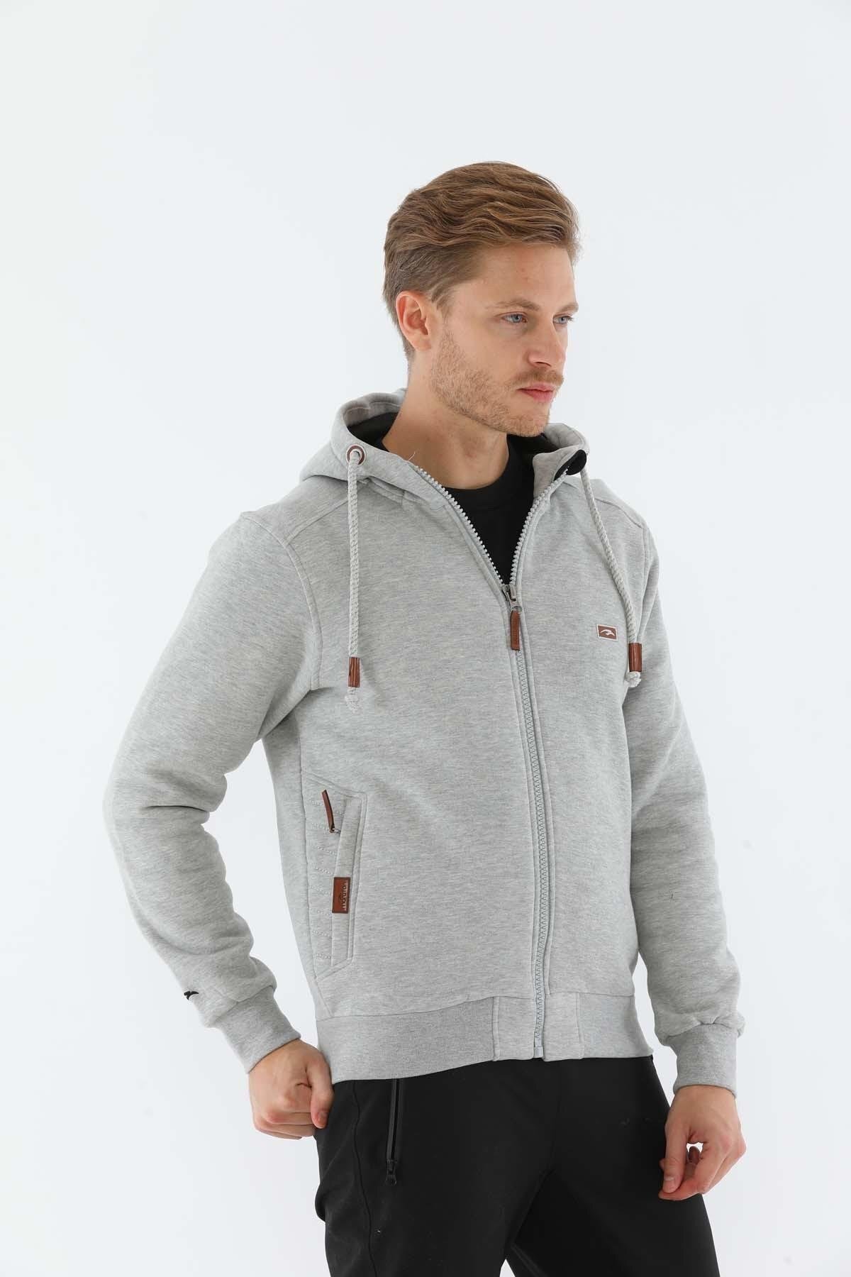 Regular Erkek Kapüşonlu Gri Melanj Tracktop Regular Erkek Kapüşonlu Gri Melanj Tracktop 10072 2XL