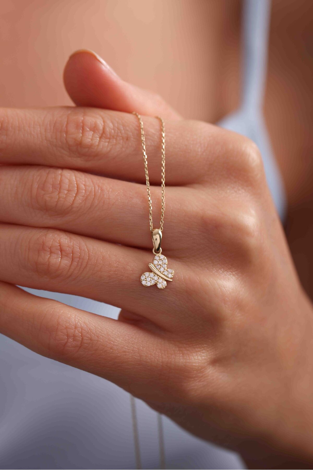 14 Ayar Altın Taşlı Kelebek Kolye Ucu 14 Ayar Altın Taşlı Kelebek Kolye Ucu GFKU1712 تک سایز