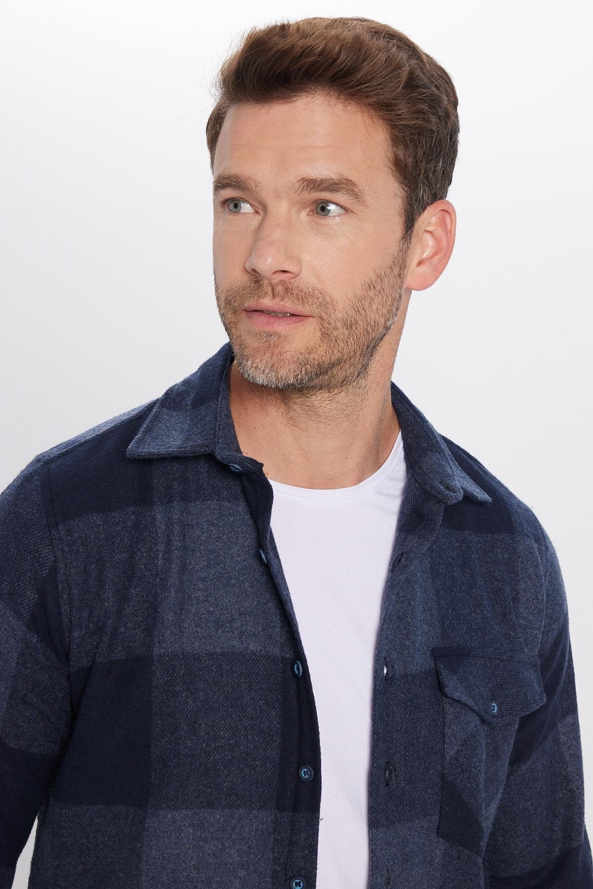 Erkek Slim Fit Dar Kesim Uzun Kollu Kareli Tek Cepli Kışlık Oduncu GömleK Erkek Slim Fit Dar Kesim Uzun Kollu Kareli Tek Cepli Kışlık Oduncu GömleK DR240035-3053 2XL