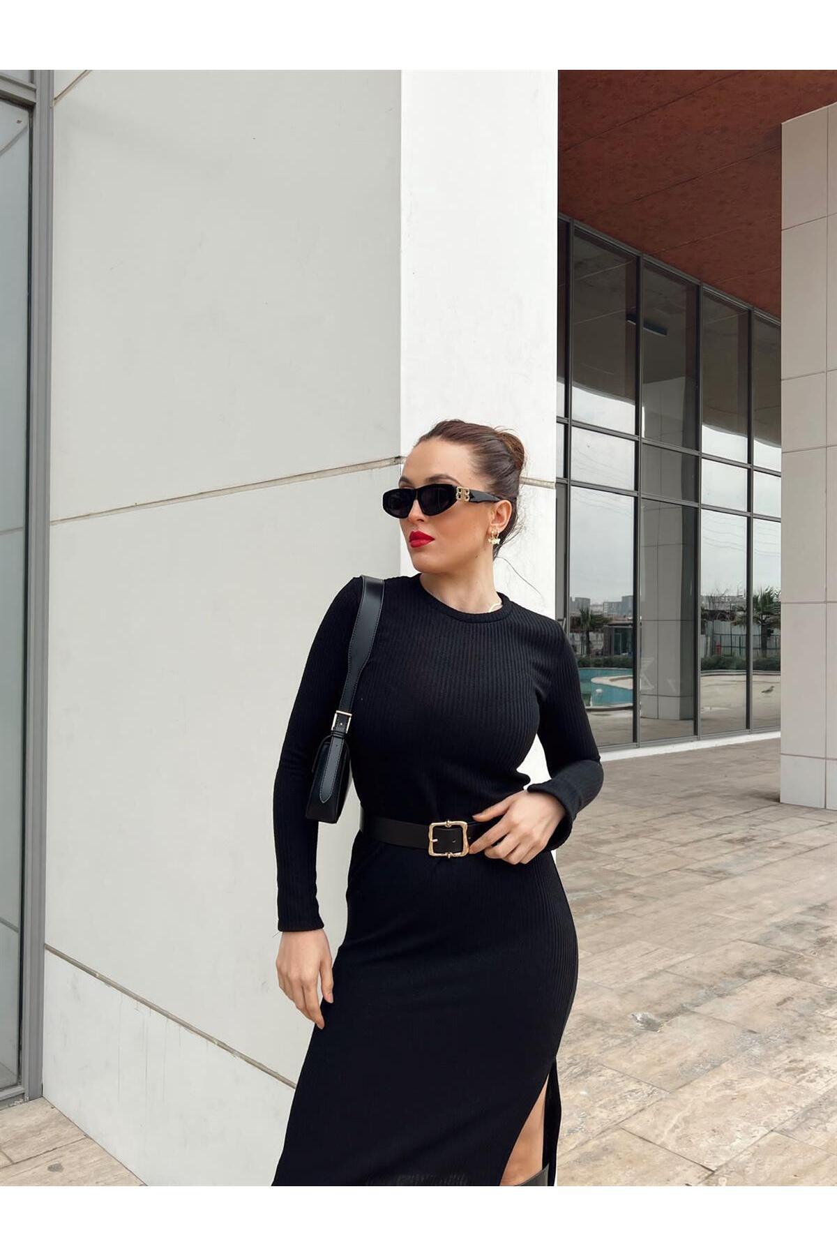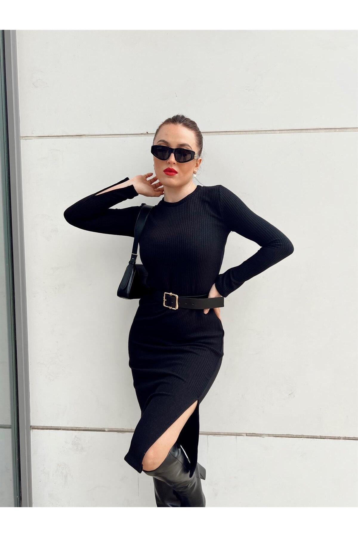 Triko Yırtmaçlı Elbise -1111 - Siyah Triko Yırtmaçlı Elbise -1111 - Siyah CON60 L