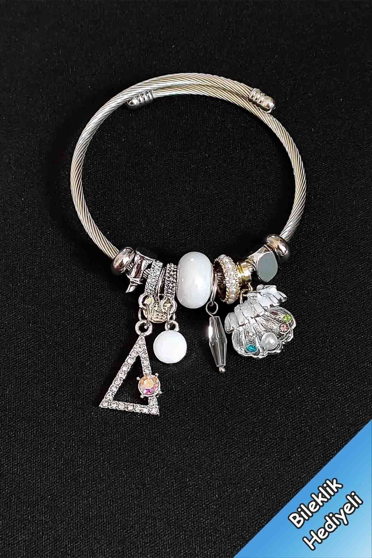 Kadın Gümüş Taşlı İstiridye Model Kararmaz Çelik Charm Bileklik Kadın Gümüş Taşlı İstiridye Model Kararmaz Çelik Charm Bileklik Charm427 تک سایز