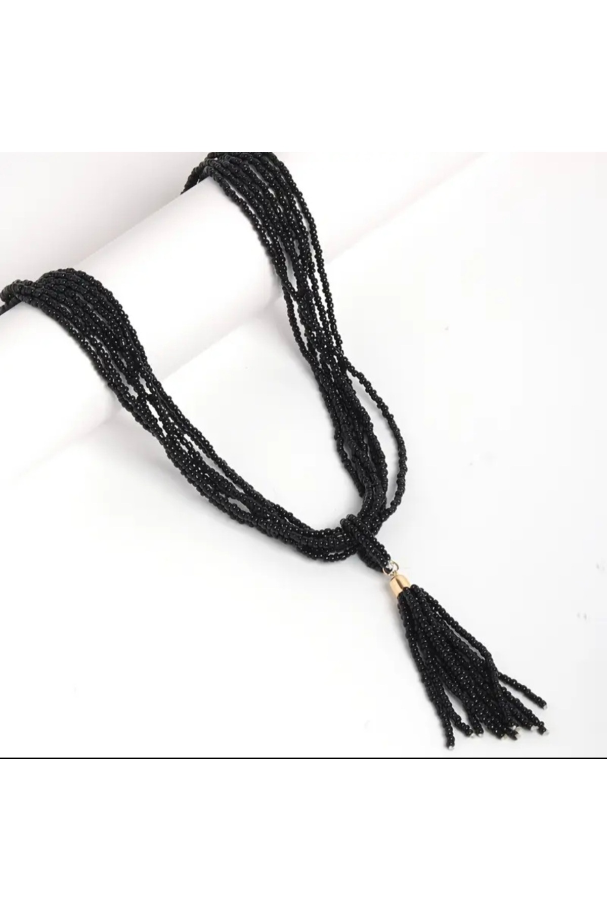KADIN SİYAH KUM BONCUK ÇOKLU TASARIM KOLYE KADIN SİYAH KUM BONCUK ÇOKLU TASARIM KOLYE İP-K092 تک سایز