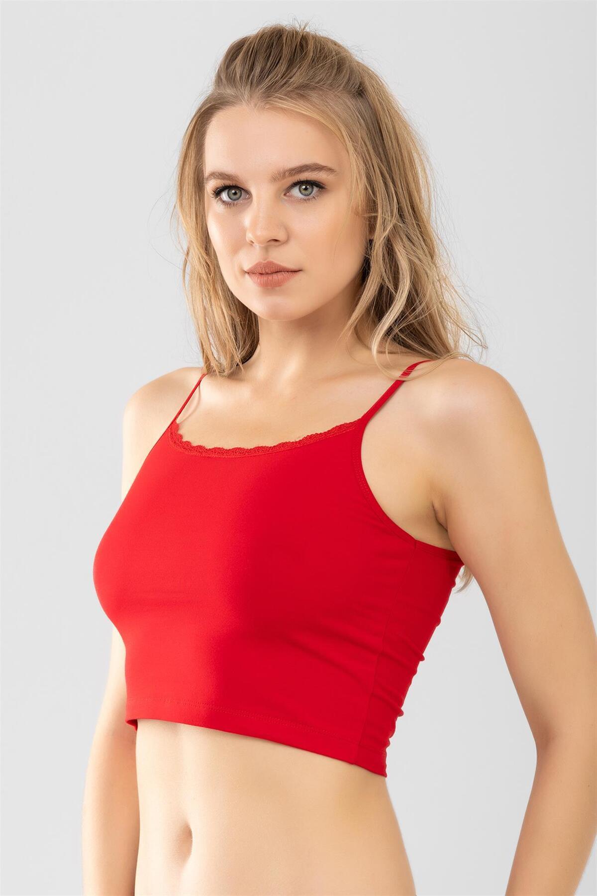 İnce İp Askılı Pamuklu Dantel Yaka Crop Atlet Kırmızı İnce İp Askılı Pamuklu Dantel Yaka Crop Atlet Kırmızı 6160-1 L