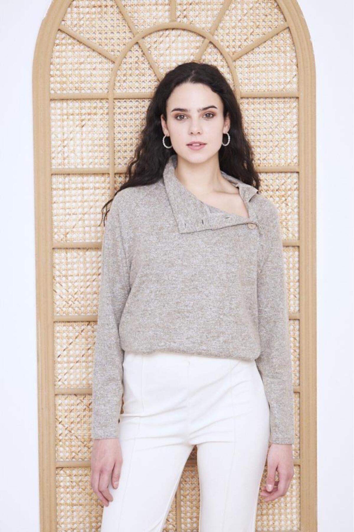 Kadın Yumoş Rahat Bej Balıkçı Yaka Uzun Kollu Düğmeli İnce Kışlık Bluz Kazak 3012203 Kadın Yumoş Rahat Bej Balıkçı Yaka Uzun Kollu Düğmeli İnce Kışlık Bluz Kazak 3012203 42