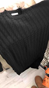 Kadın Siyah Örgü Detaylı Kalın Oversize Triko Elbise YY00184 Kadın Siyah Örgü Detaylı Kalın Oversize Triko Elbise YY00184 Standart