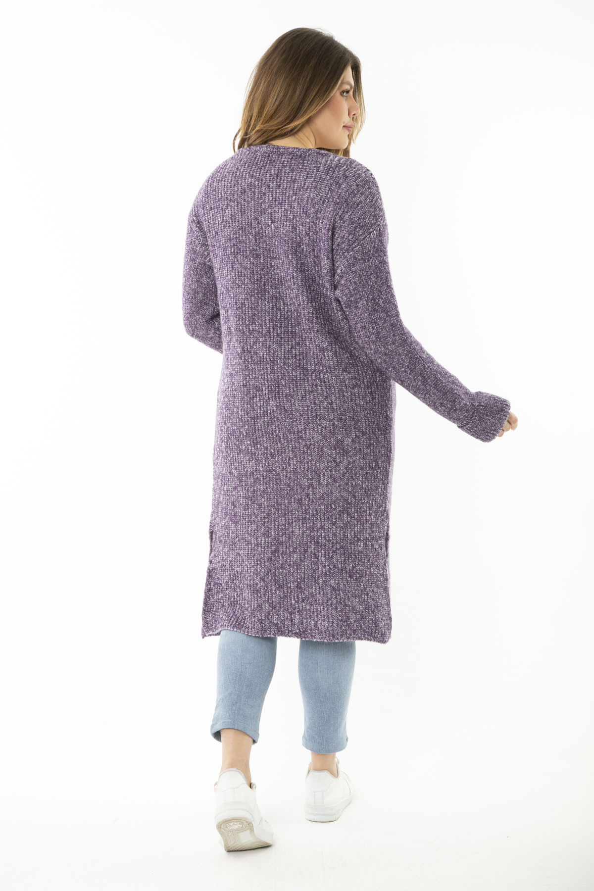 Kadın Büyük Beden Mor Yırtmaçlı Kalın Triko Uzun Hırka 65N37166 Kadın Büyük Beden Mor Yırtmaçlı Kalın Triko Uzun Hırka 65N37166 46-48