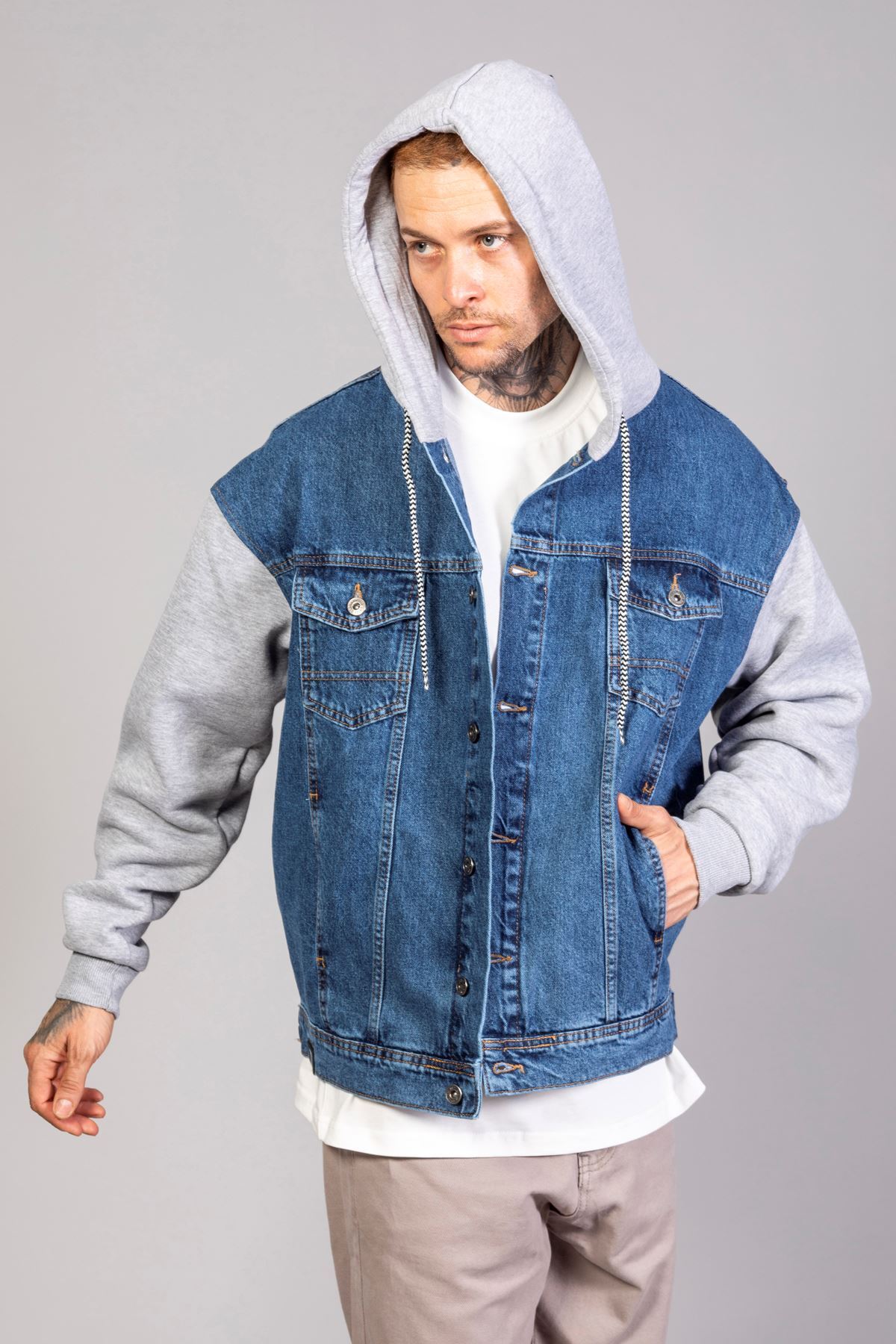 Erkek Oversize Mavi Kollar Polar Kapüşonlu Kot Ceket Erkek Oversize Mavi Kollar Polar Kapüşonlu Kot Ceket A5059 XL