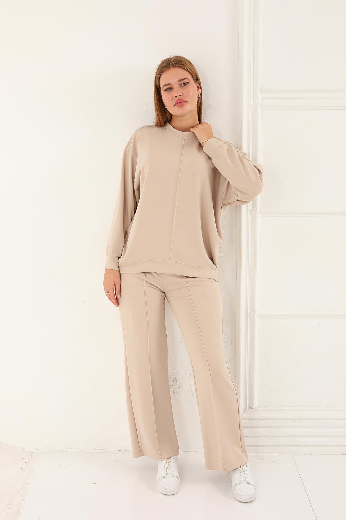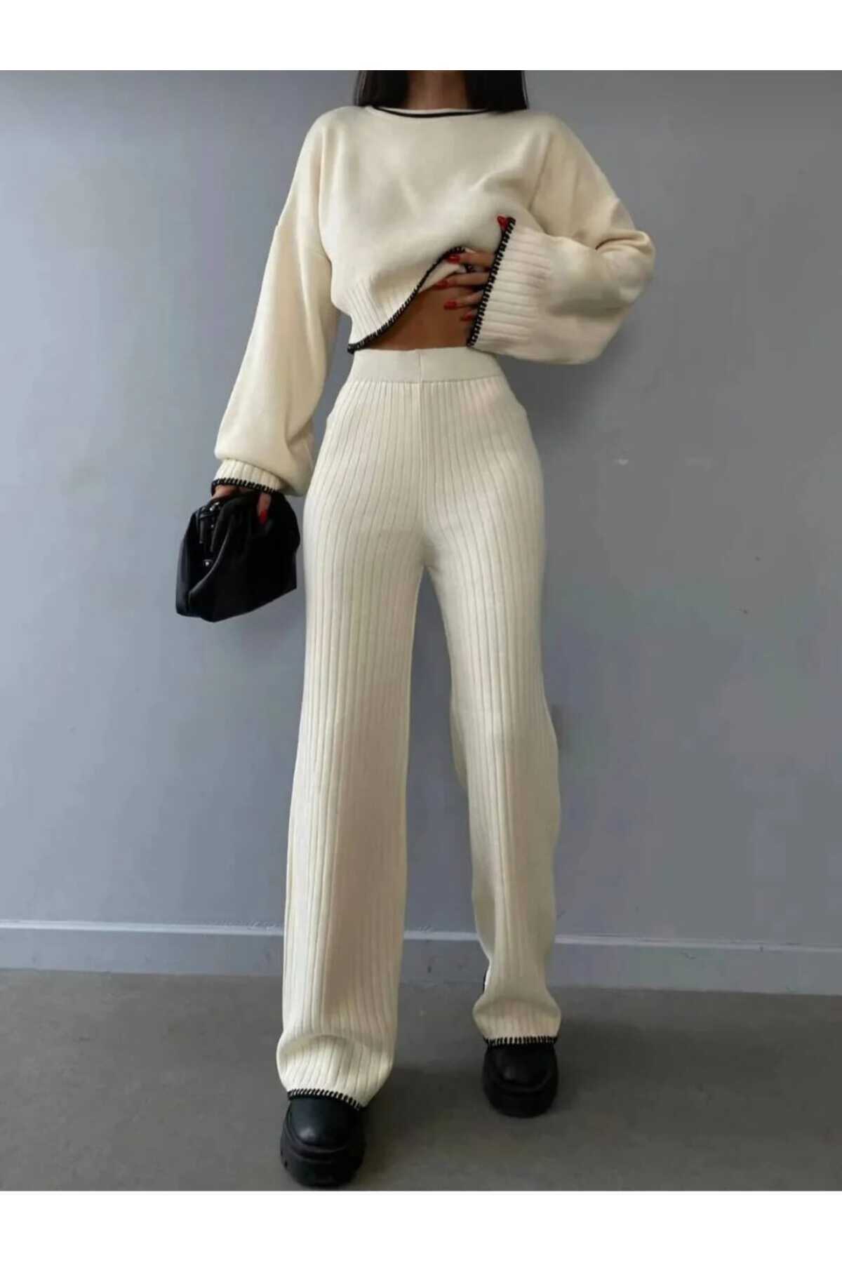 Bej İntersiye Çizgili Yırtmaçlı Örgü Crop-Pantolon Kadın Triko Alt-Üst Takım Bej İntersiye Çizgili Yırtmaçlı Örgü Crop-Pantolon Kadın Triko Alt-Üst Takım 44761 Standart