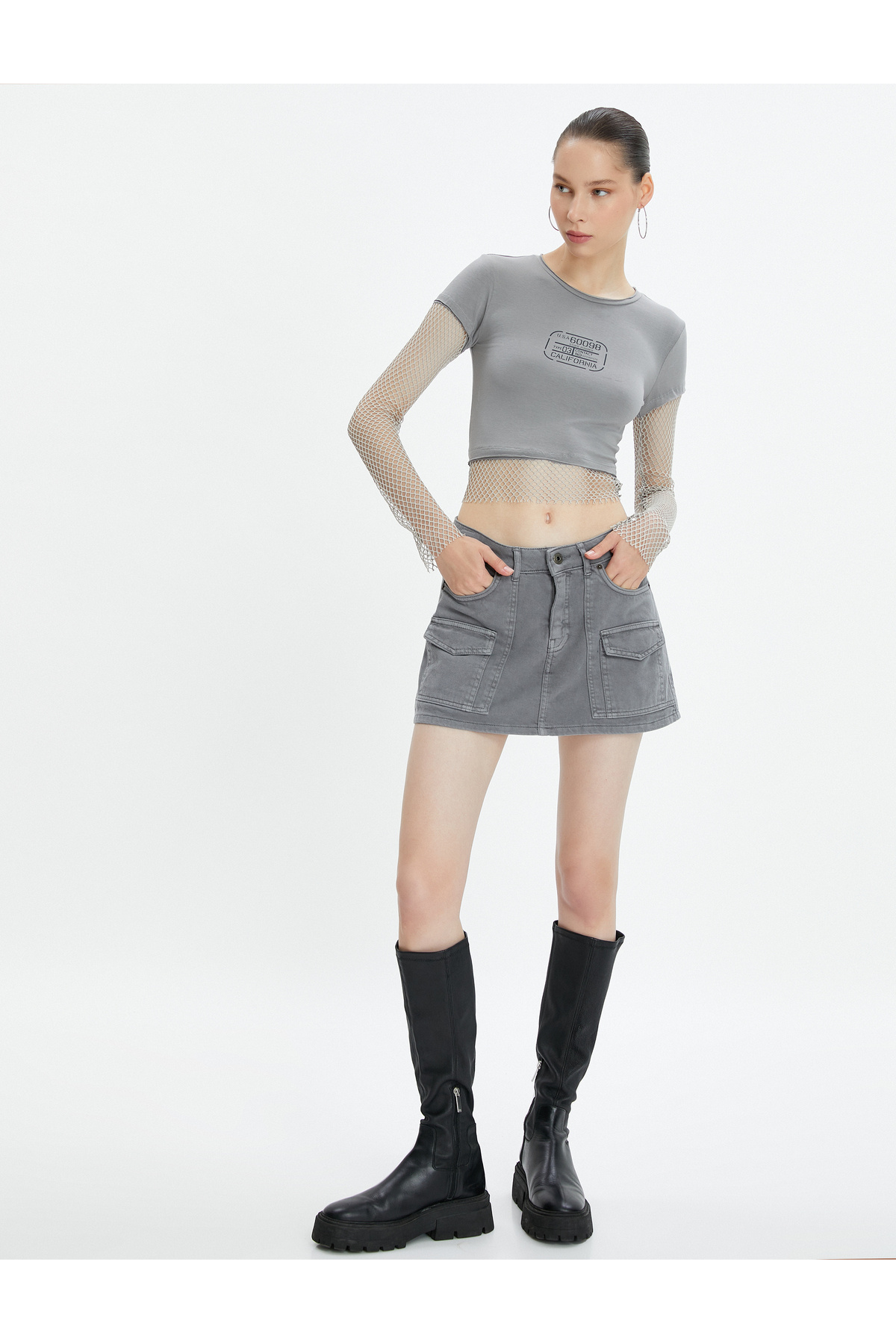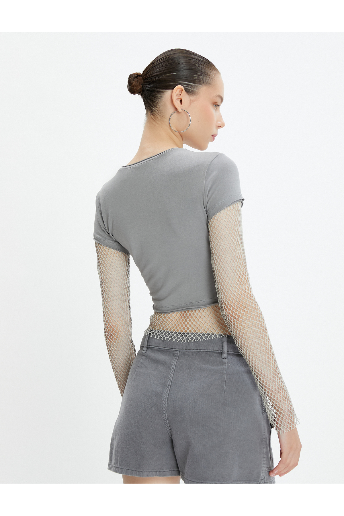 Crop Tişört File Detaylı Kısa Kollu Bisiklet Yaka Pamuklu Crop Tişört File Detaylı Kısa Kollu Bisiklet Yaka Pamuklu 4WAL10437IK XL