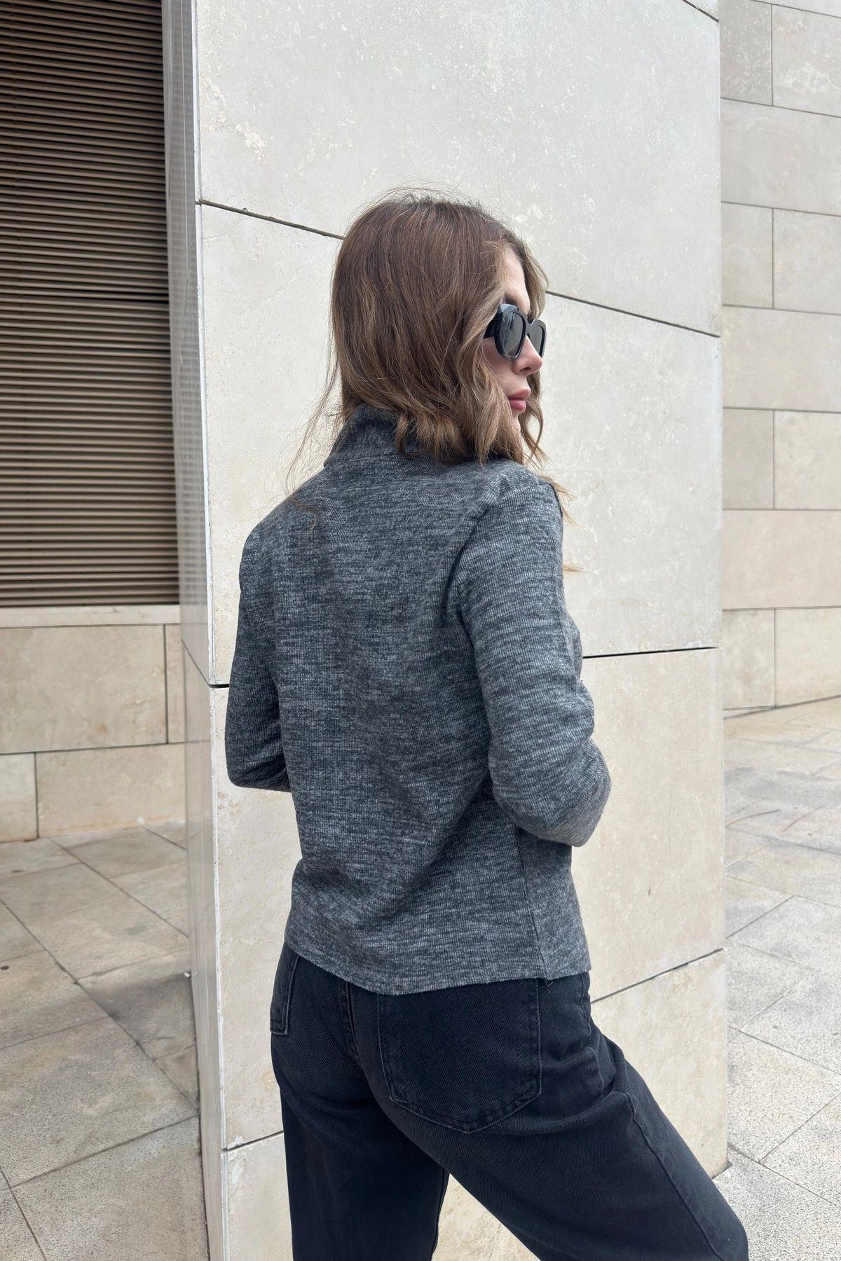 Kadın Antrasit Broş Yaka, Uzun Kol, Lazer Kesim, Dokulu Kumaş, Düğmesiz Ceket Kadın Antrasit Broş Yaka, Uzun Kol, Lazer Kesim, Dokulu Kumaş, Düğmesiz Ceket NY2976 42