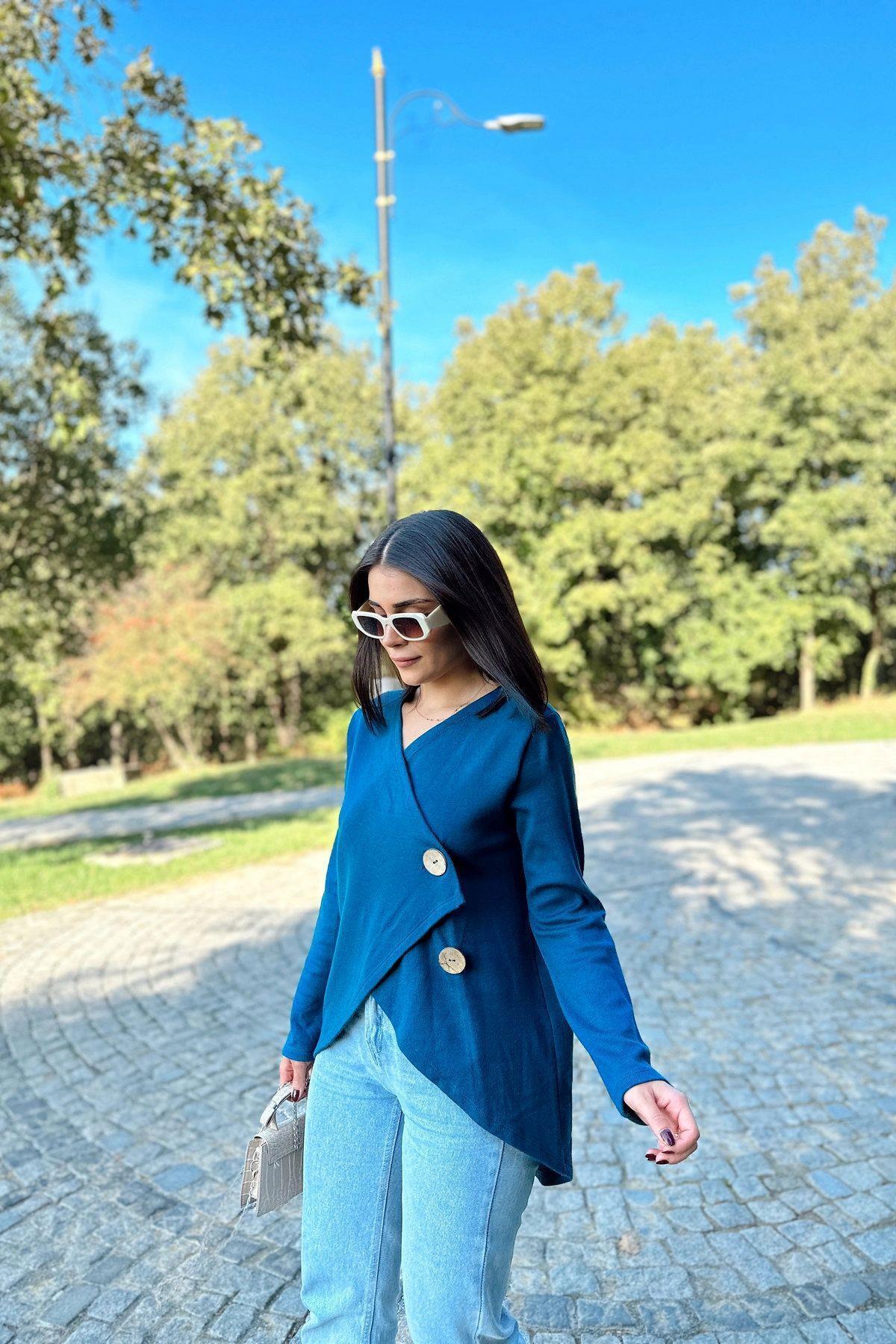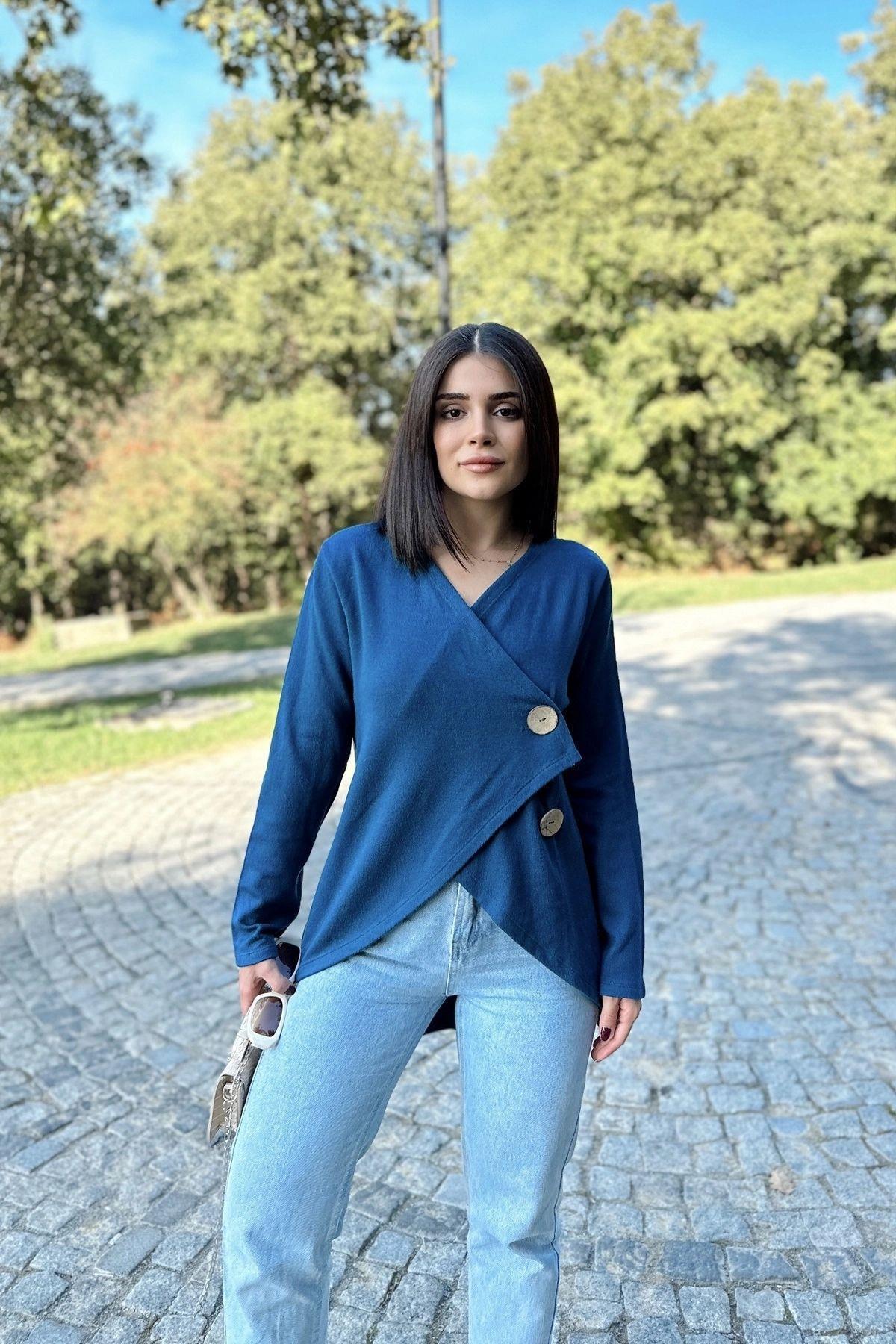 Kadın İndigo Asimetrik Kesim, Düğmeli, Salaş Hırka Bluz Kadın İndigo Asimetrik Kesim, Düğmeli, Salaş Hırka Bluz NY3328 42