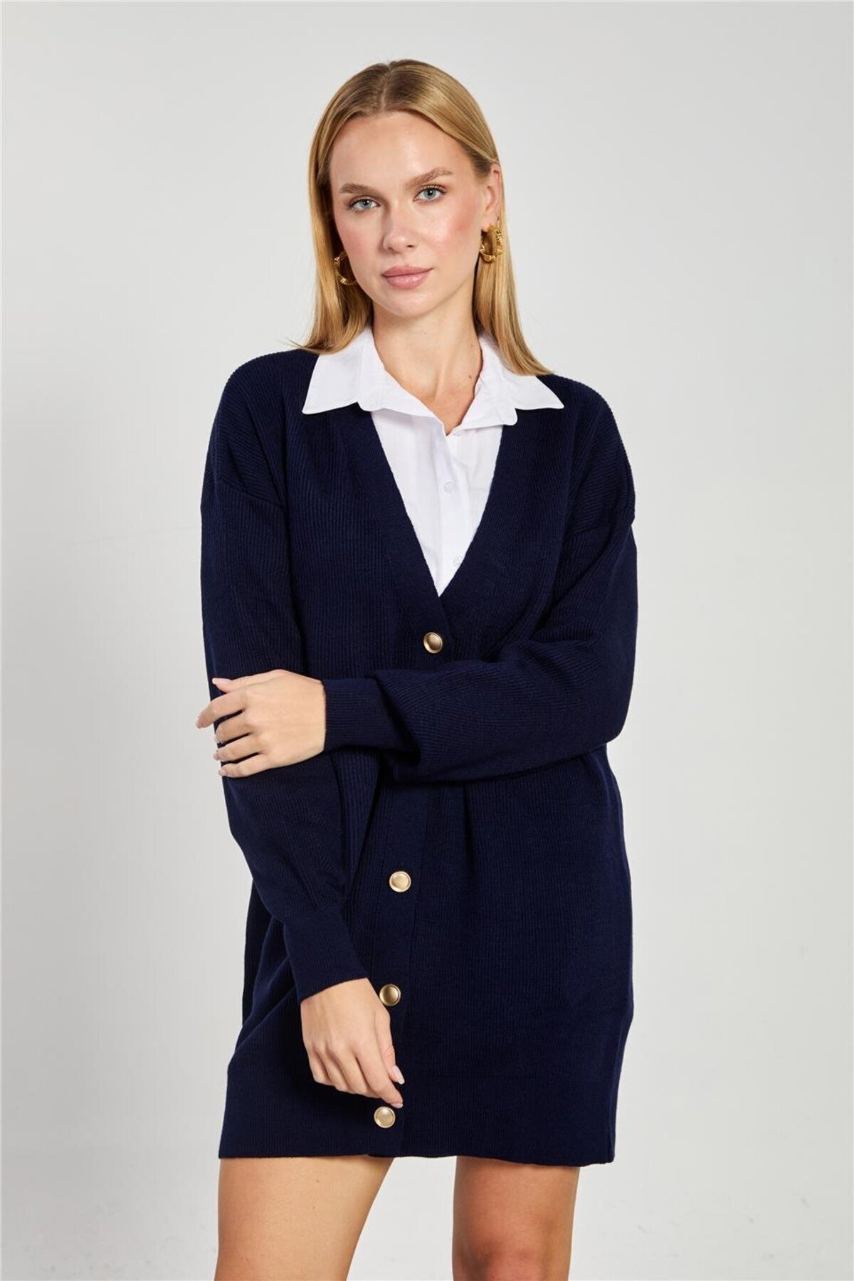 Fitilli Düğmeli Uzun Triko Hırka -laci Fitilli Düğmeli Uzun Triko Hırka -laci TY357-6040 Standart
