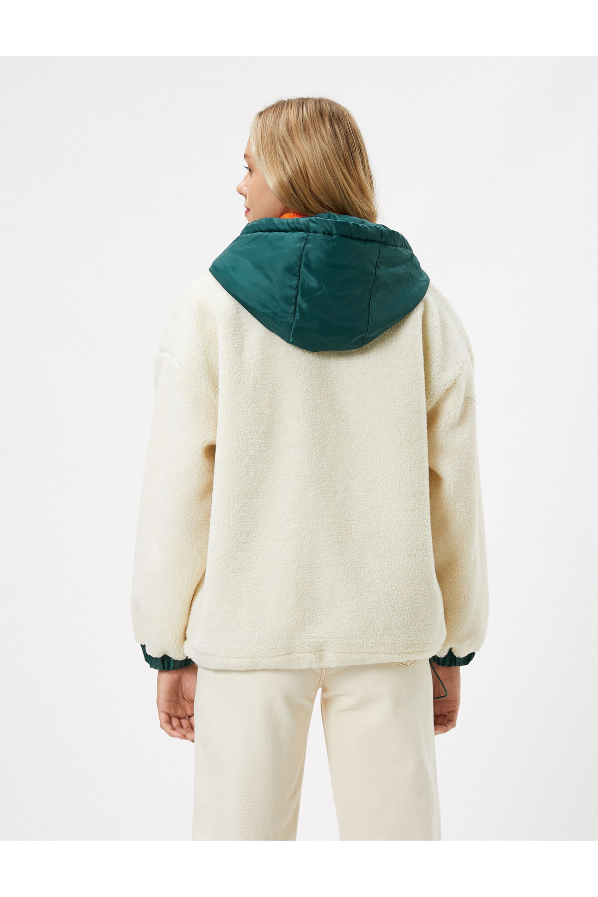 Peluş Ceket Kapşonlu Renk Kontrastlı Cepli Peluş Ceket Kapşonlu Renk Kontrastlı Cepli 4WAL20109IW 42