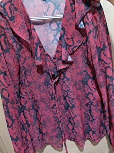 Şifon Transparan Gömlek Balon Kollu V Yaka Fırfırlı Şifon Transparan Gömlek Balon Kollu V Yaka Fırfırlı 4WAK60256PW 42