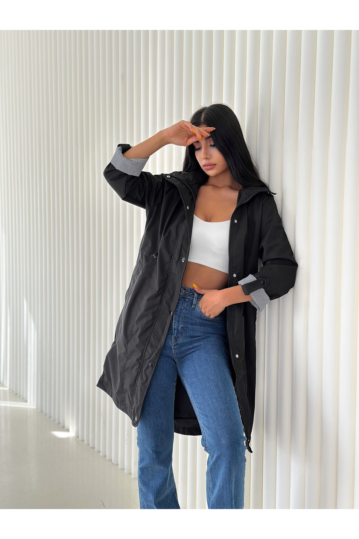 Kadın Kapşonlu Bej Yanlardan Büzgülü Katlanabilir Kol Astarlı Trençkot Yağmurluk Kadın Kapşonlu Bej Yanlardan Büzgülü Katlanabilir Kol Astarlı Trençkot Yağmurluk MDF580507 XL