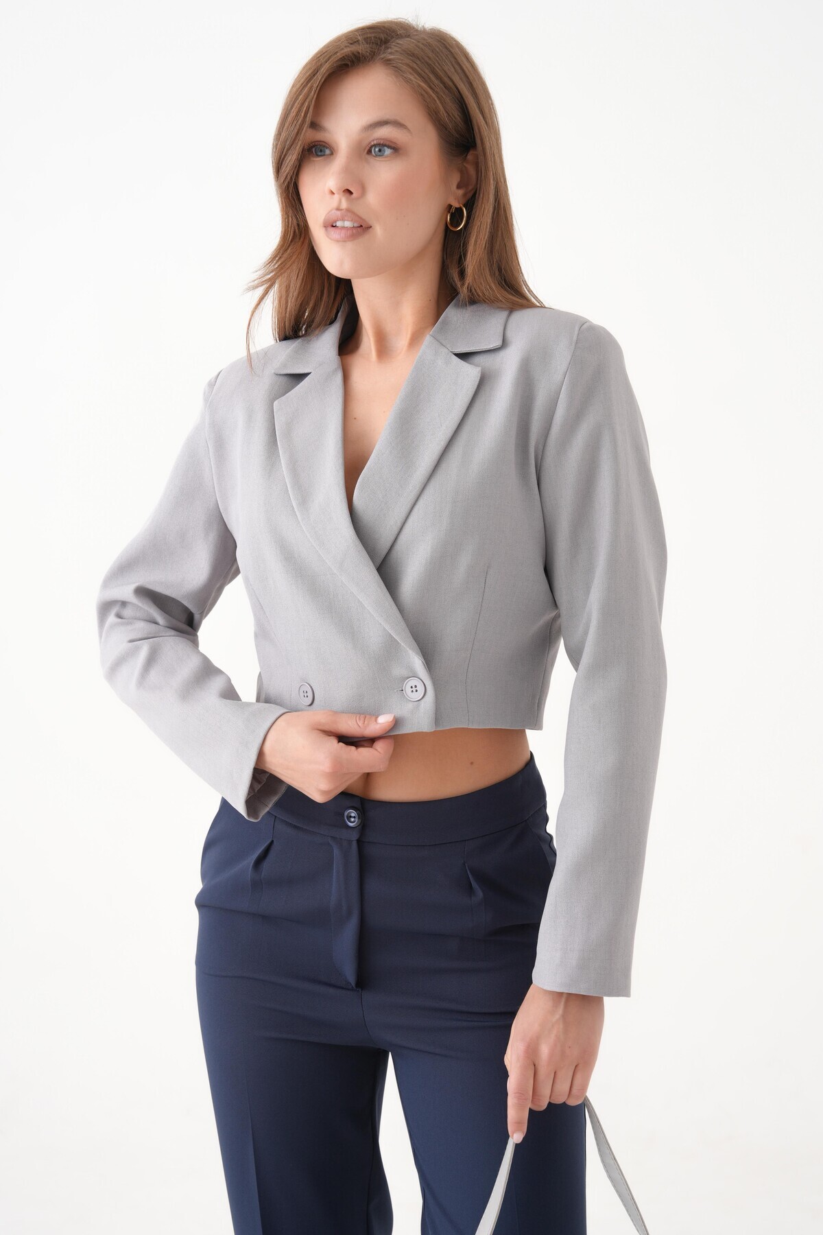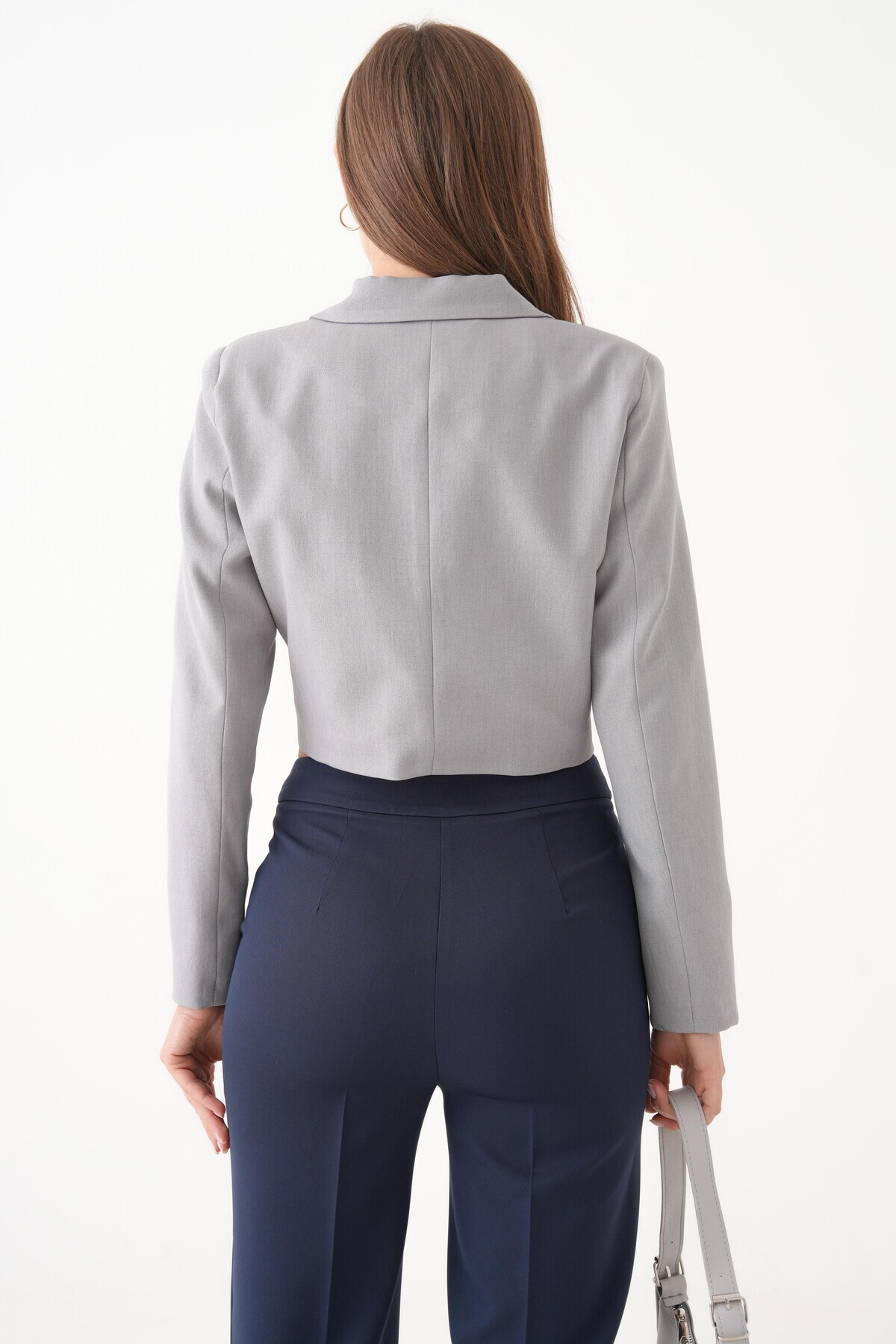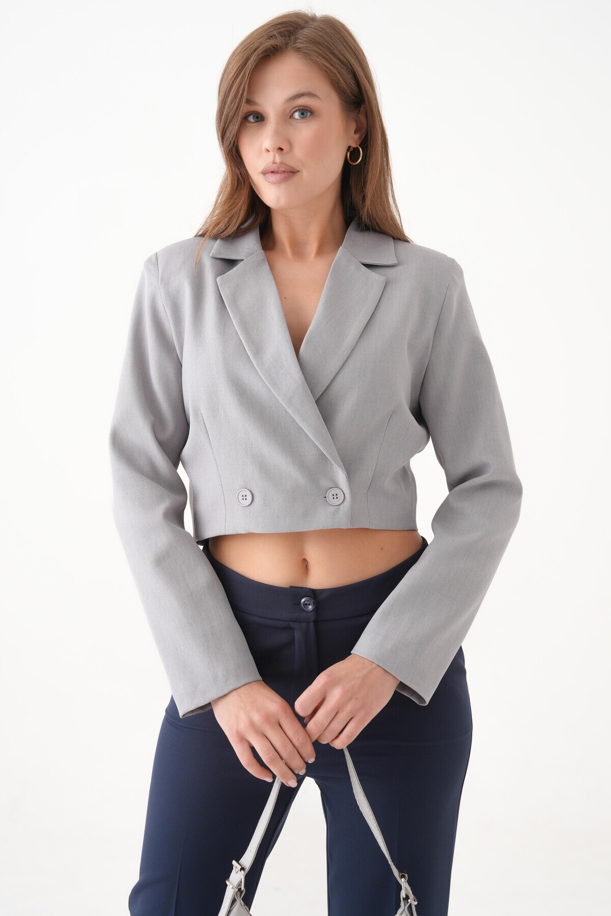 Gri Kruvaze Crop Ceket Gri Kruvaze Crop Ceket SD/MYAZ23CK0136 44