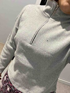 Kadın Açık Gri Fermuarlı Dik Yaka Şardonlu Kazak Kadın Açık Gri Fermuarlı Dik Yaka Şardonlu Kazak KZK-19000640 L/XL