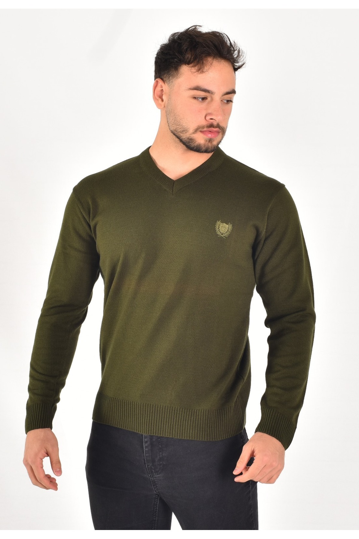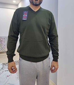 erkek v yaka triko kazak haki erkek v yaka triko kazak haki VY149202 2XL