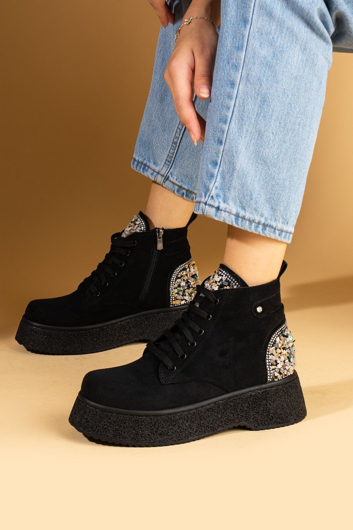 Kadın Siyah Süet Rahat Taban Sıcak Astar Lastikli Tarz Bot Kadın Siyah Süet Rahat Taban Sıcak Astar Lastikli Tarz Bot 59-900-23 40