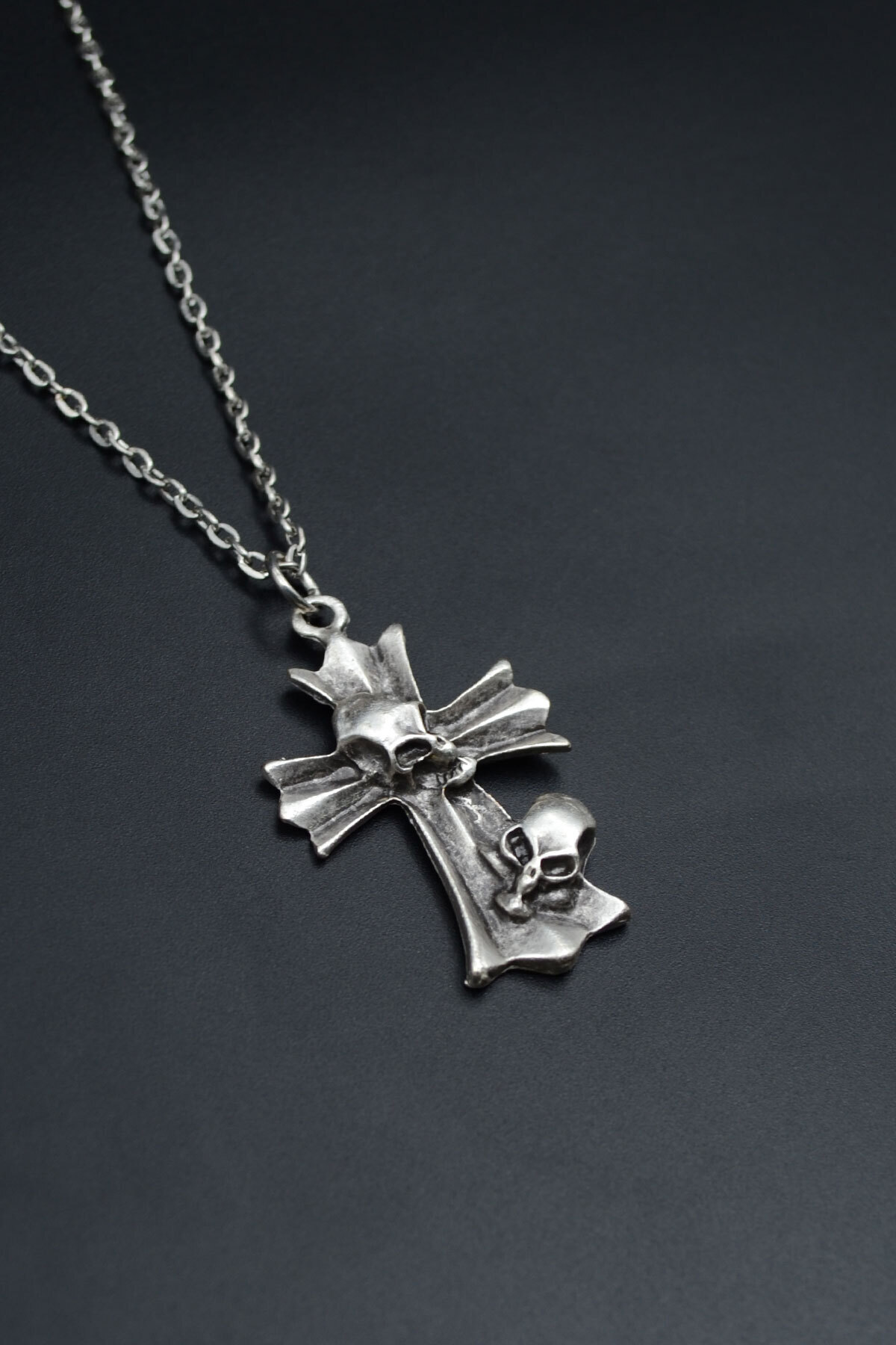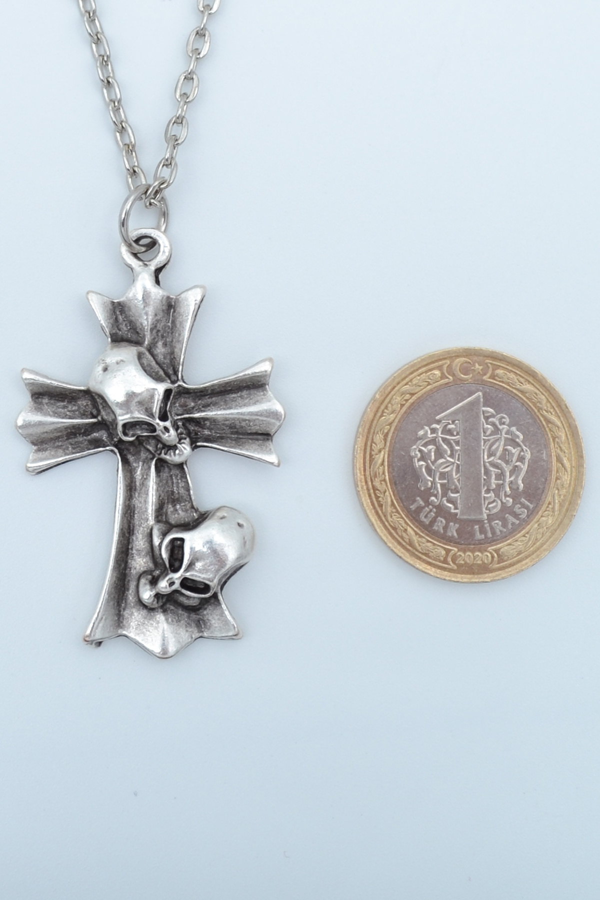 2'li Kuru Kafa Haç - Orak Azrail Gümüş Kaplama Unisex Düz Zincir Kolye Seti kod 1042 2'li Kuru Kafa Haç - Orak Azrail Gümüş Kaplama Unisex Düz Zincir Kolye Seti kod 1042 P1042S4518 60 cm