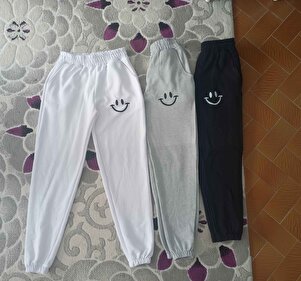 3-lü Gülen Yüzler Baskılı Jogger Eşofman Altı - Siyah Beyaz Gri Lastik Paça Yüksek Bel 3-lü Gülen Yüzler Baskılı Jogger Eşofman Altı - Siyah Beyaz Gri Lastik Paça Yüksek Bel GLNYZLRJG-MYT XL