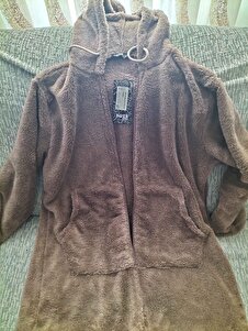 Kadın Vizon Kapşonlu Uzun Peluş Ceket Kadın Vizon Kapşonlu Uzun Peluş Ceket 800141 4XL