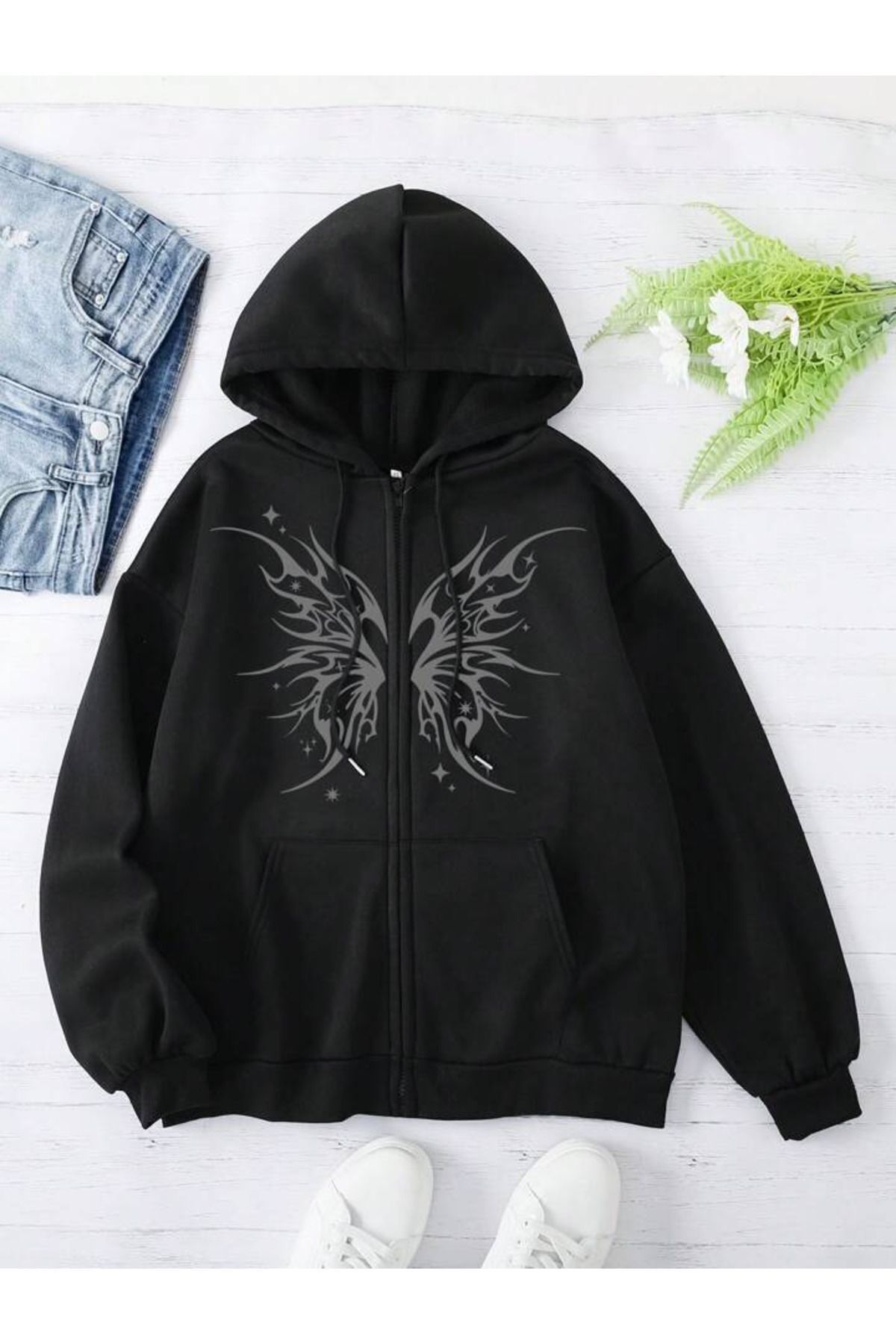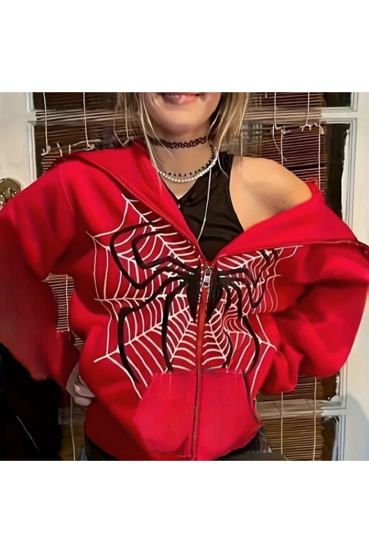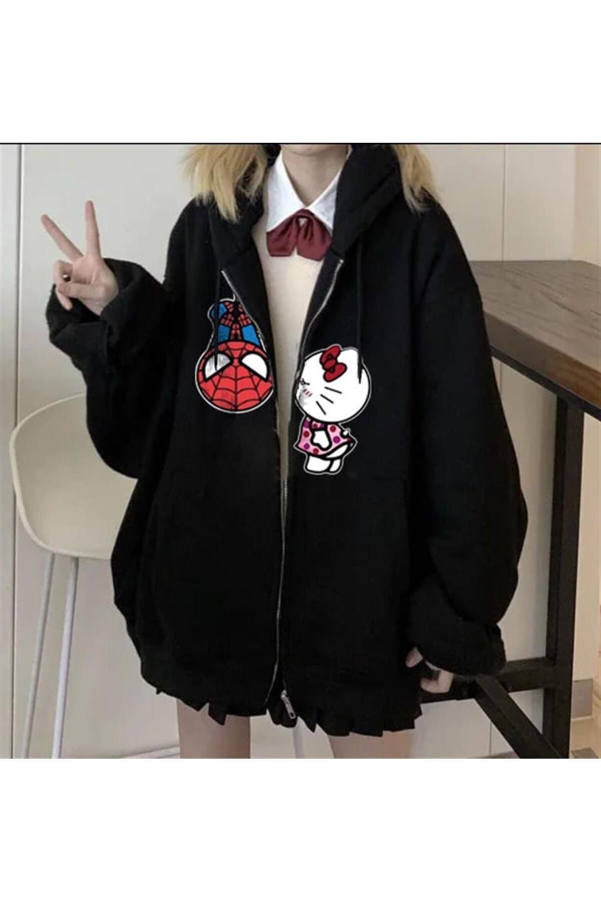Y2K Allover Spider Fermuarlı Kapüşonlu Y2K Allover Spider Fermuarlı Kapüşonlu 6743839 XL