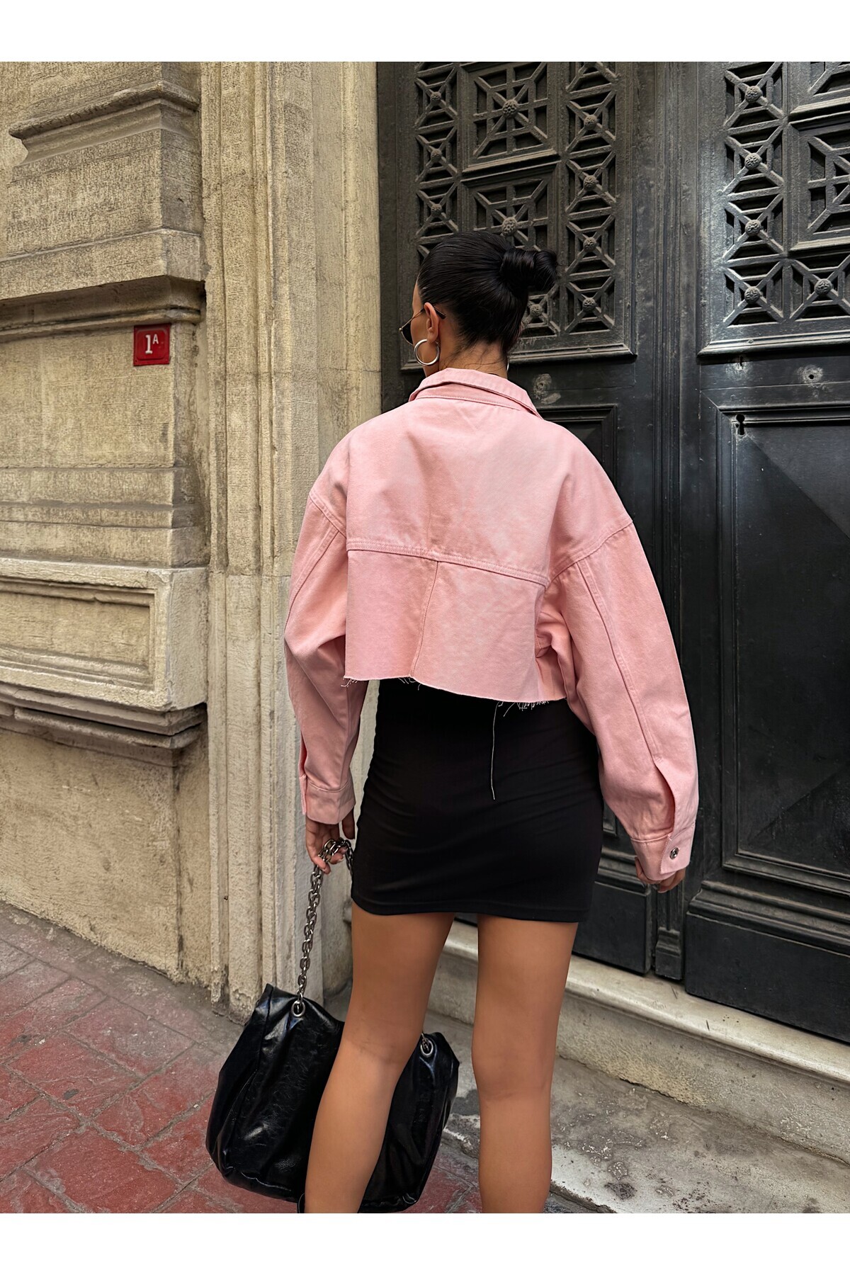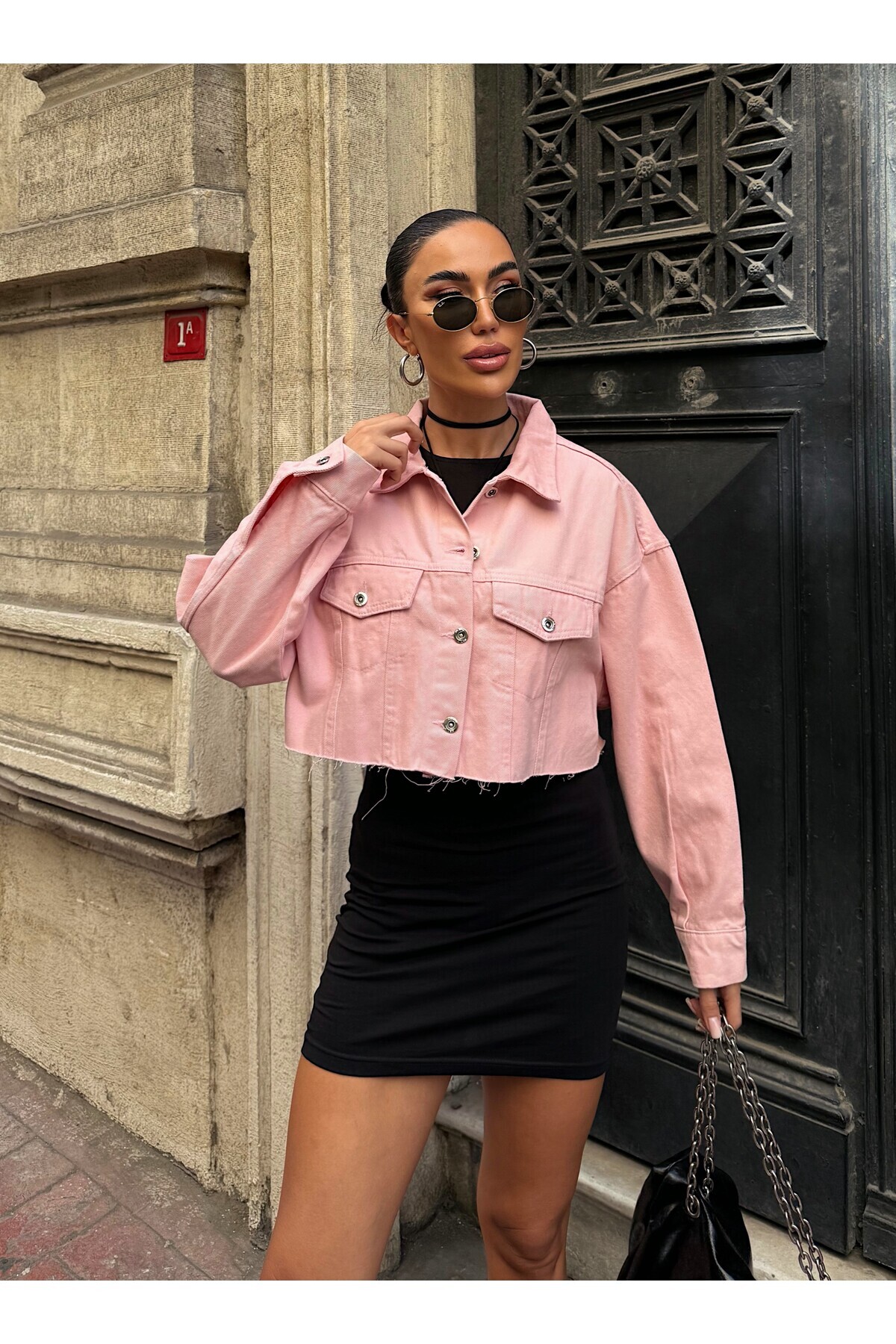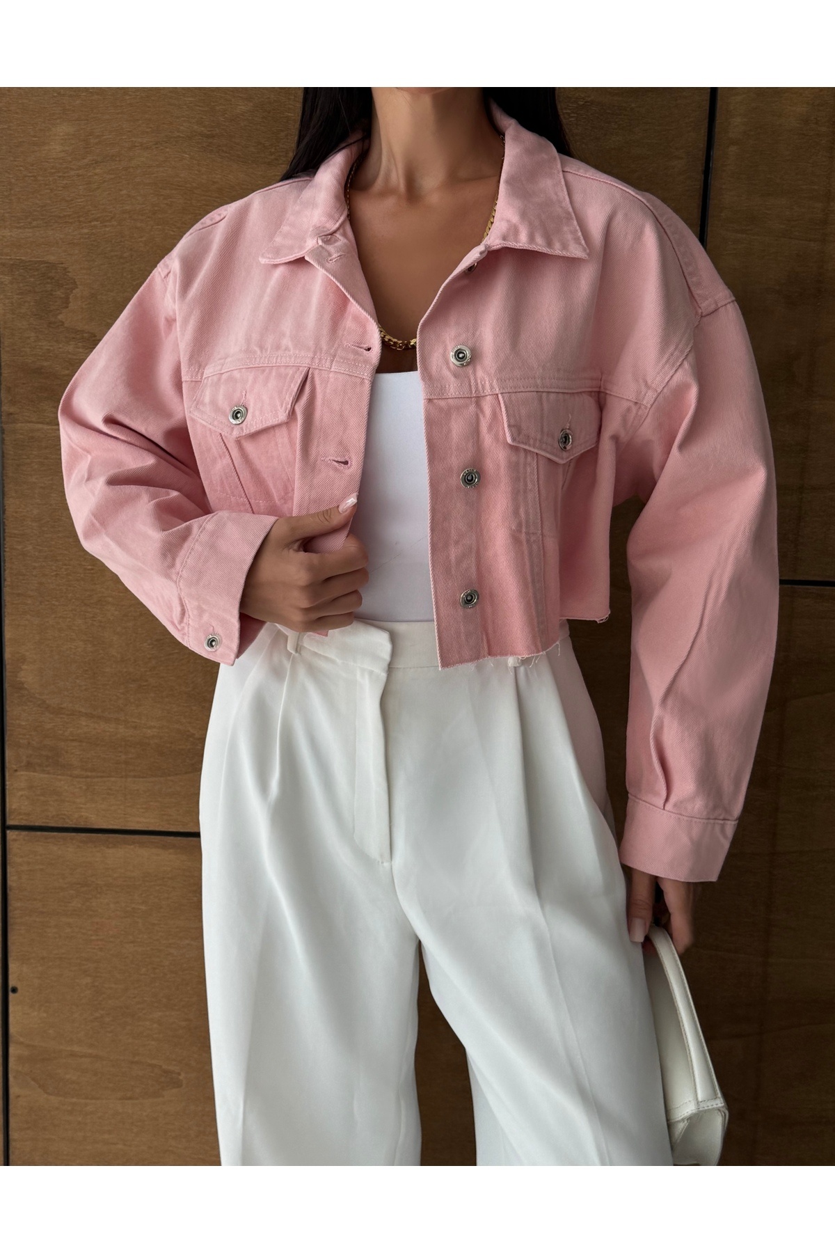 Kadın Crop Kesim Denim Ceket Oversize Kalıp Kadın Crop Kesim Denim Ceket Oversize Kalıp Laluna612KCCD L