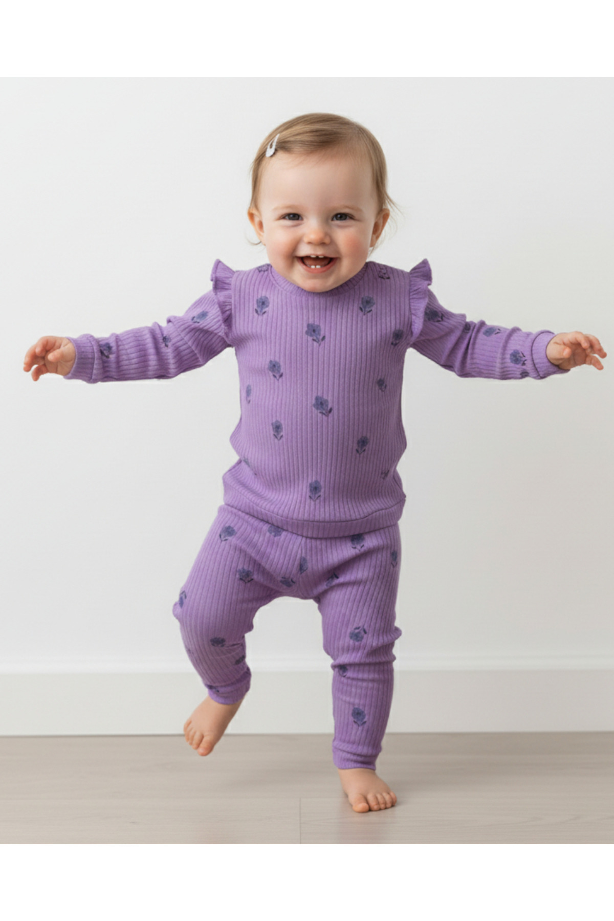 Kız Bebek Kalp Nakışlı Ispanyol Paçalı Ribana-Fitilli Kumaş Mevsimlik 2li Takım Kız Bebek Kalp Nakışlı Ispanyol Paçalı Ribana-Fitilli Kumaş Mevsimlik 2li Takım R587 5-6 Yaş