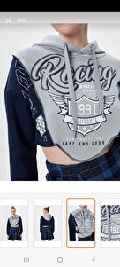 Şardonlu Kapşonlu Crop Sweatshirt Slim Fit Baskılı Renk Bloklu Şardonlu Kapşonlu Crop Sweatshirt Slim Fit Baskılı Renk Bloklu 4WAL10649IK XL