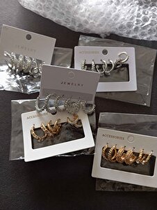 Kadın silver 3 farklı boy tırtıklı küpe seti Kadın silver 3 farklı boy tırtıklı küpe seti takı01664 تک سایز