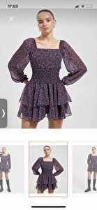 Çiçekli Mini Elbise Uzun Tül Kollu Astarlı Kare Yaka Katlı Çiçekli Mini Elbise Uzun Tül Kollu Astarlı Kare Yaka Katlı 4WAL80006IW 40