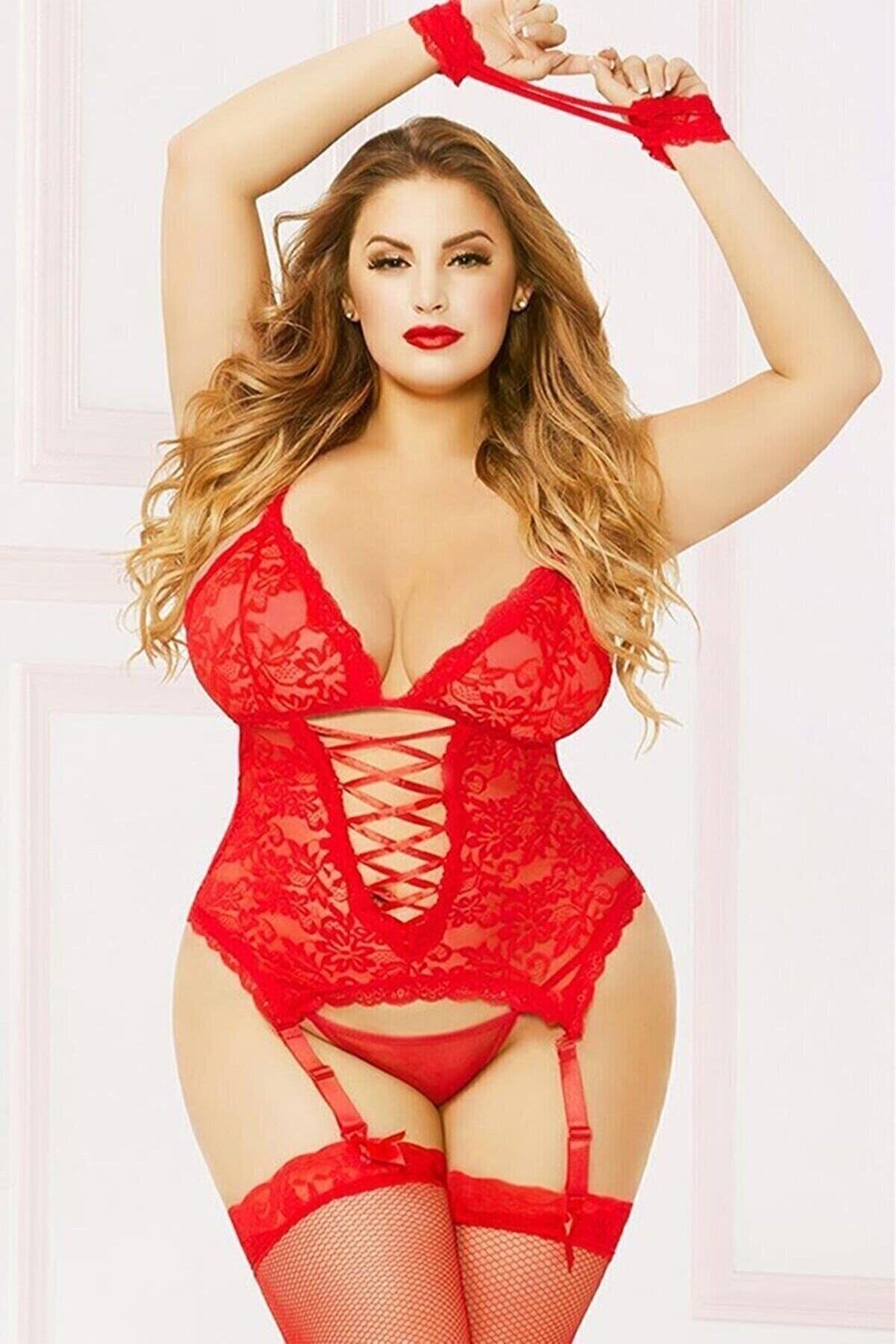 Kadın Kırmızı Jartiyer Takımı Kelepçeli Fantazi Kostüm Kadın Kırmızı Jartiyer Takımı Kelepçeli Fantazi Kostüm Seba-0006 4XL