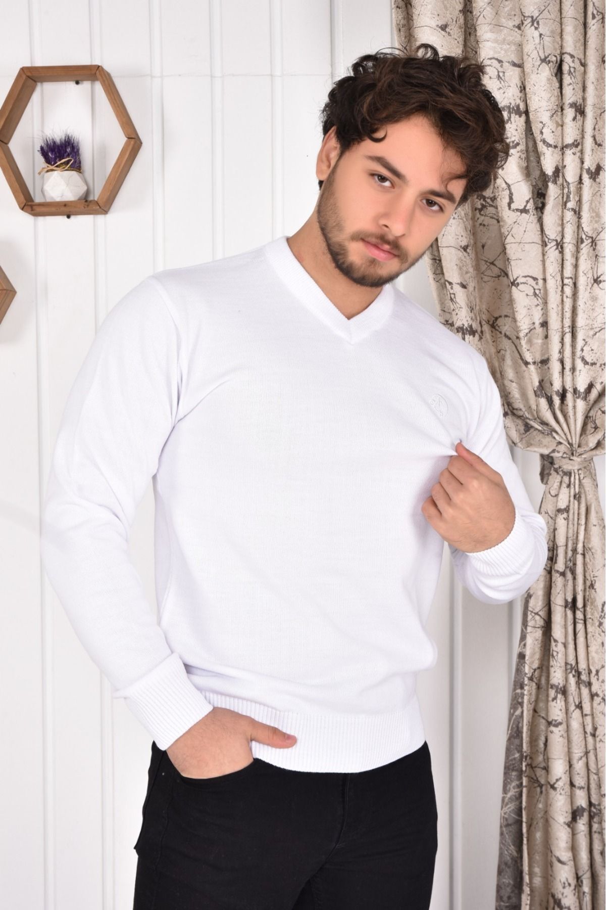 erkek v yaka triko kazak beyaz erkek v yaka triko kazak beyaz VY149202 2XL