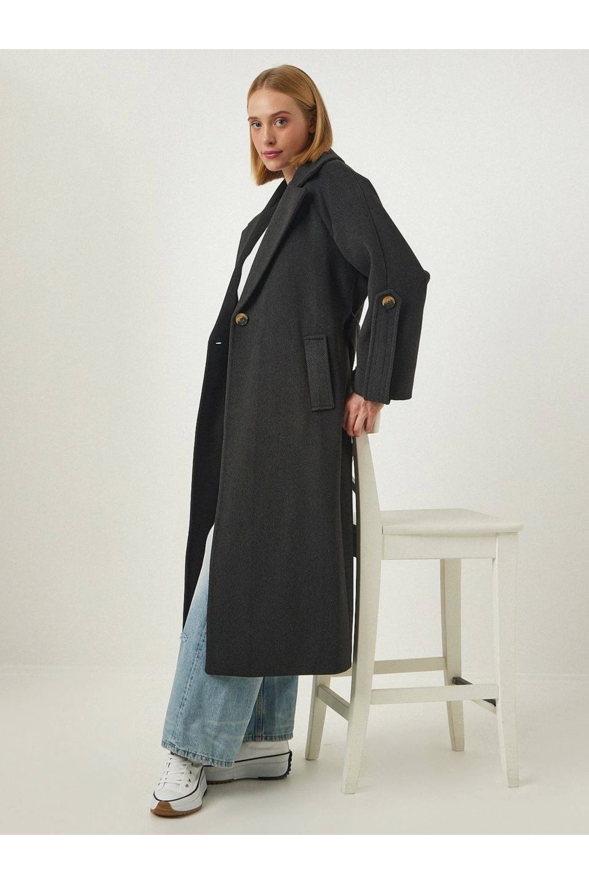 Kol Detaylı Dokulu Premium Kaban Antrasit Kol Detaylı Dokulu Premium Kaban Antrasit P640S6112 M