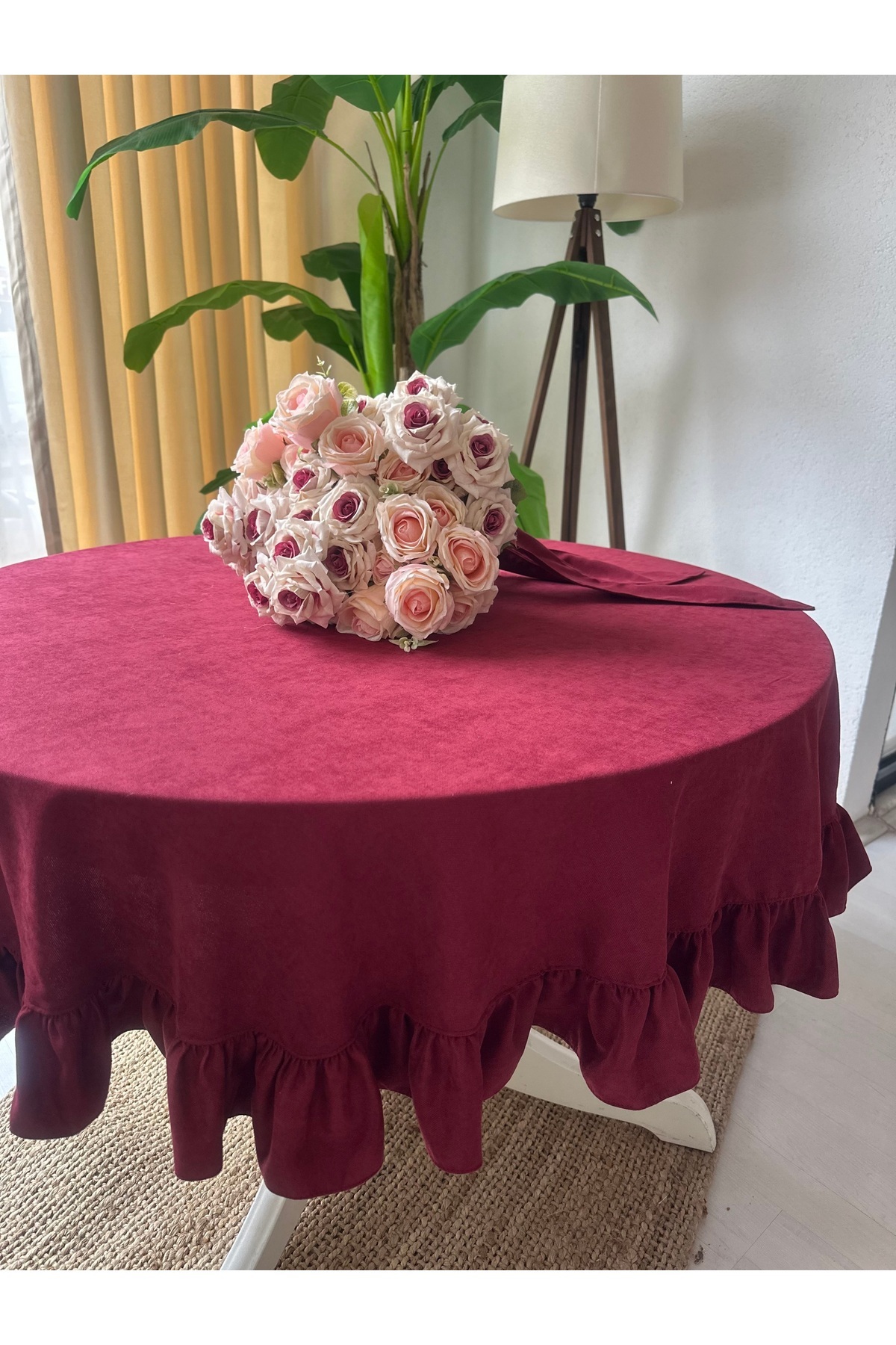 Kadife Dokulu Vintage Bordo Fırfırlı Yuvarlak Masa Örtüsü Dertsiz Kadife Dokulu Vintage Bordo Fırfırlı Yuvarlak Masa Örtüsü Dertsiz Vintage1 145 x 145