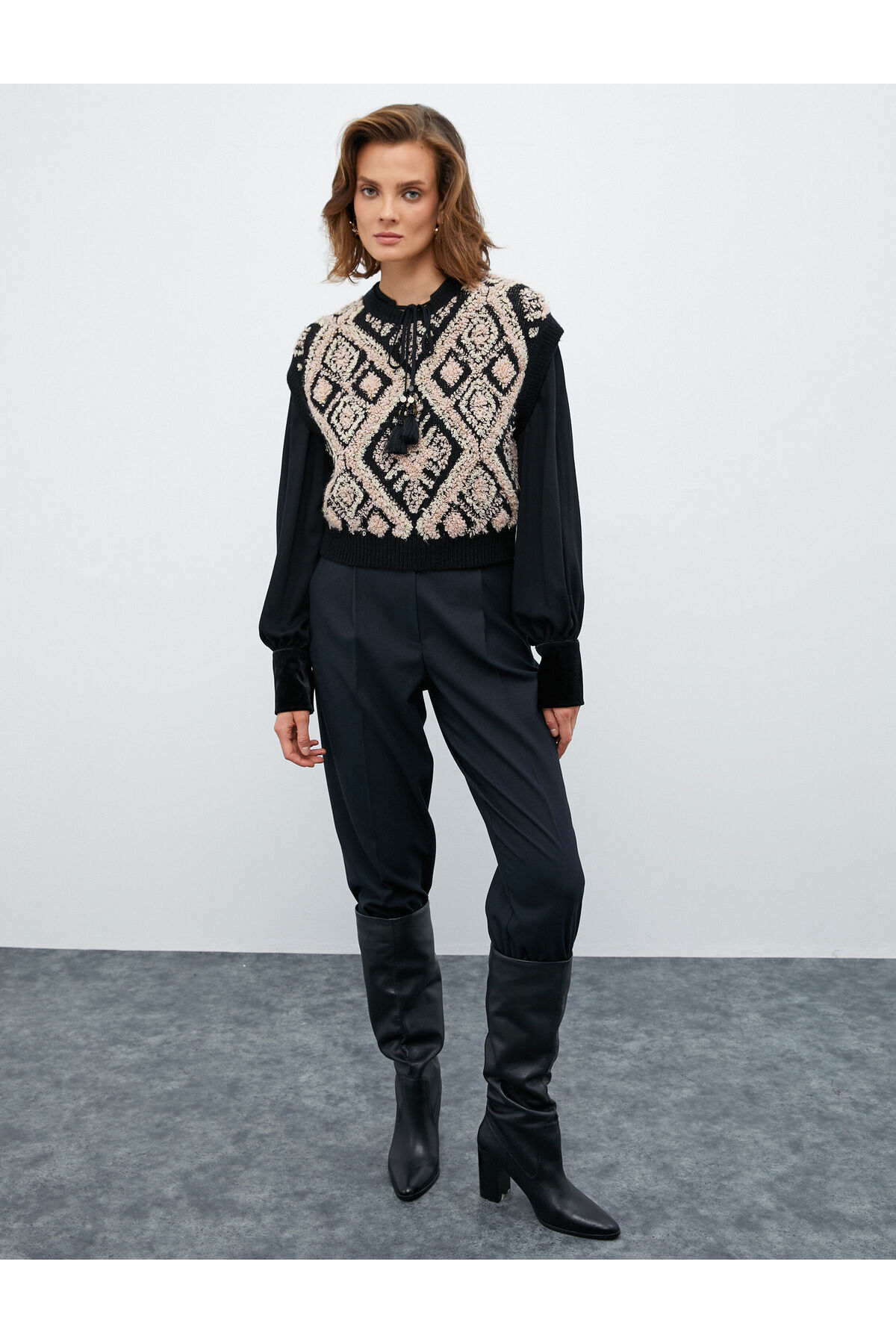 Melis Ağazat X Koton - Bisiklet Yaka Dokulu Örgü Süveter Melis Ağazat X Koton - Bisiklet Yaka Dokulu Örgü Süveter 4WAK20047HT XL