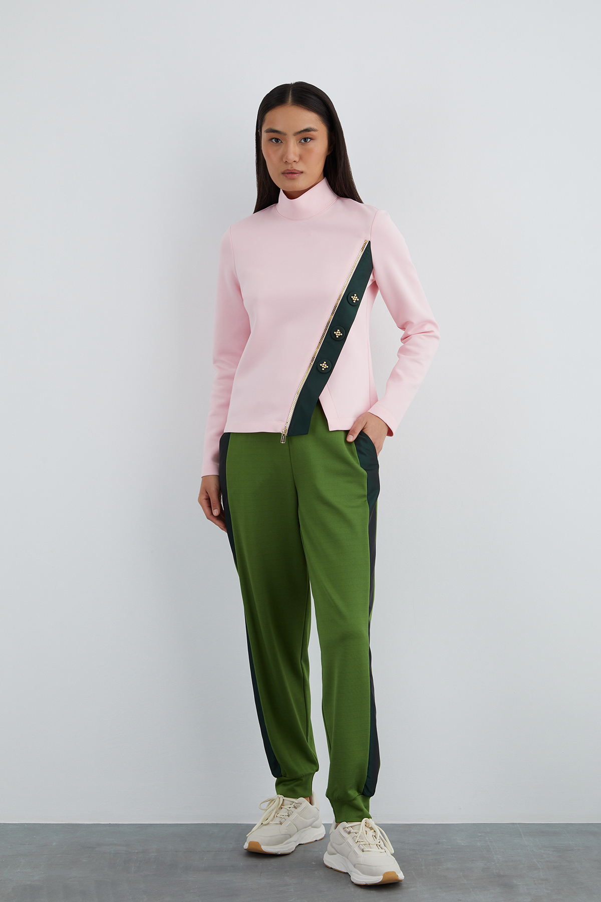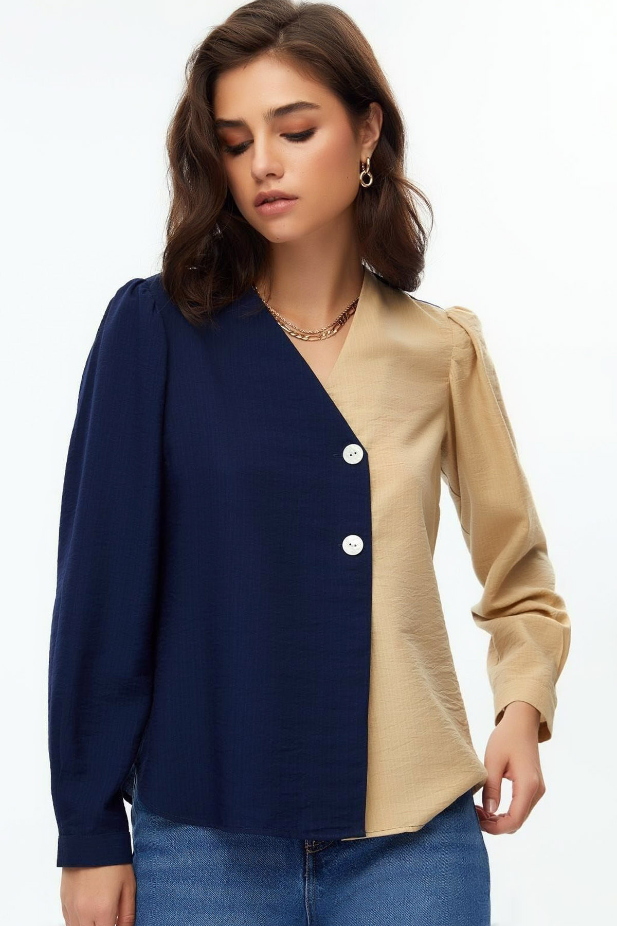 Kadın Bluz V Yaka Uzun Karpuz Kol İki Renkli Düğmeli Şık ve Bol Kalıp Bluz Kadın Bluz V Yaka Uzun Karpuz Kol İki Renkli Düğmeli Şık ve Bol Kalıp Bluz NLRU-1013 50