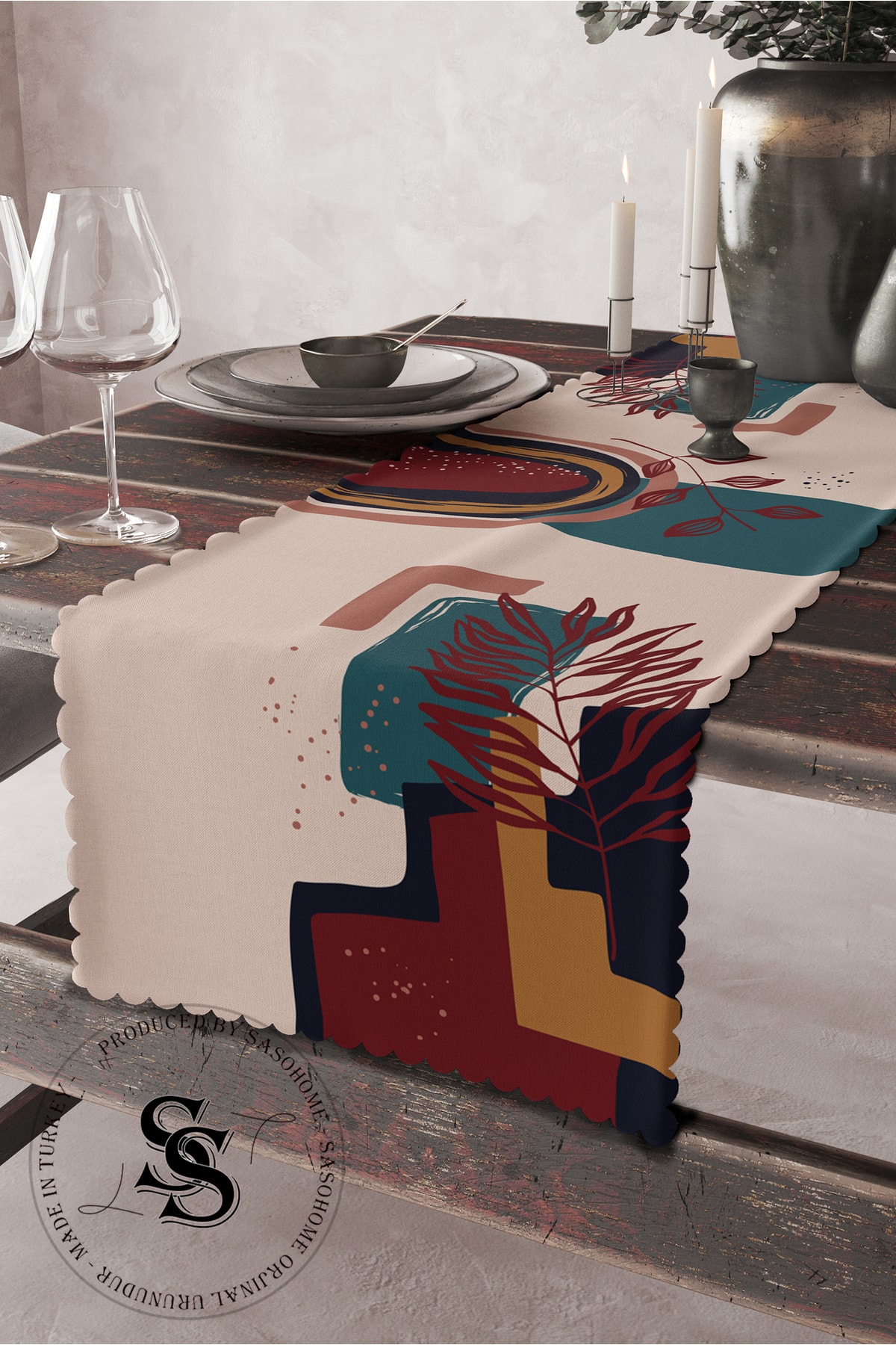 Modern Pastel Zemin Üzerine Palmiye Yaprakları Desenli Dijital Baskılı Dekoratif Runner Modern Pastel Zemin Üzerine Palmiye Yaprakları Desenli Dijital Baskılı Dekoratif Runner RSaso-009 تک سایز