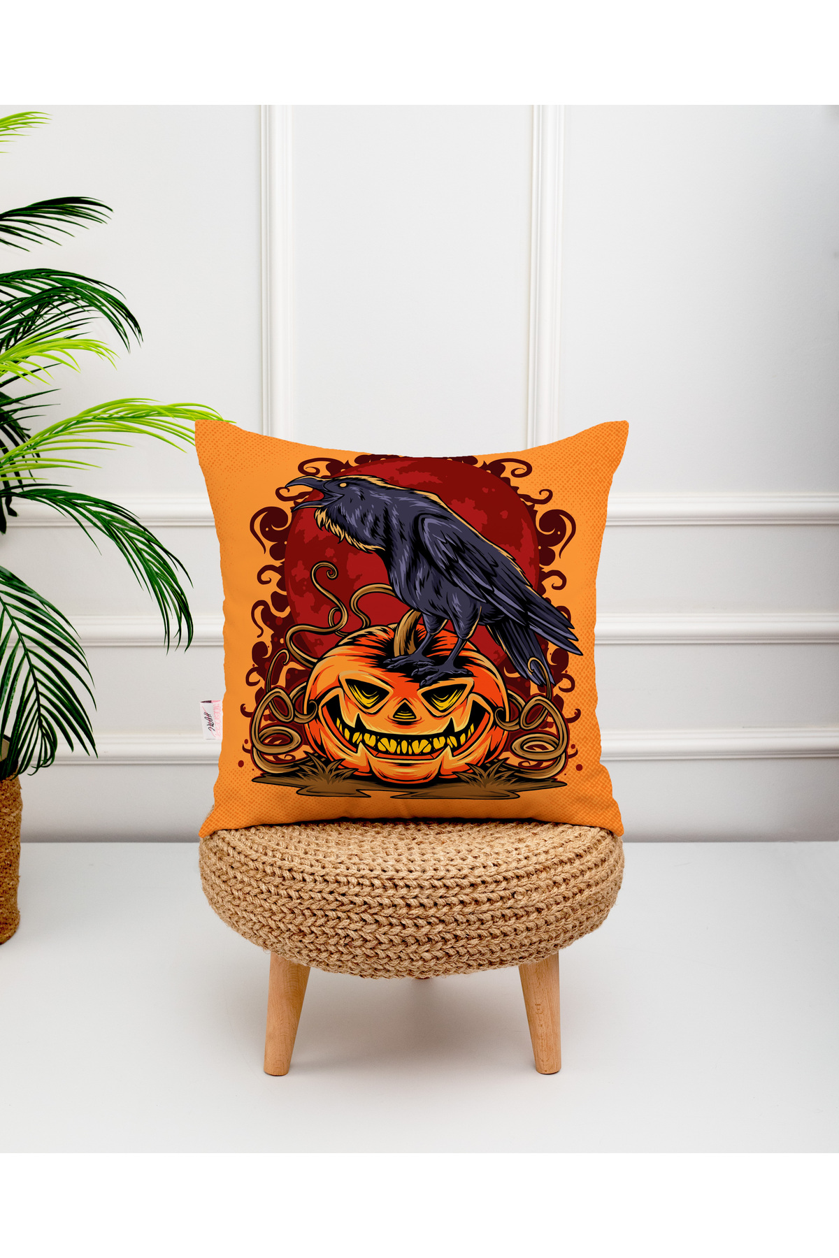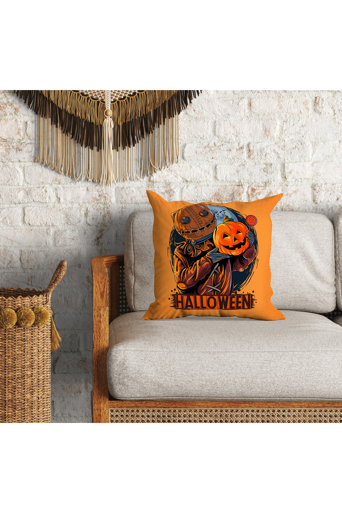 Turuncu Halloween Balkabağı Desenli Kırlent Kılıfı , Cadılar Bayramı Kırlent Kılıfı Turuncu Halloween Balkabağı Desenli Kırlent Kılıfı , Cadılar Bayramı Kırlent Kılıfı MNSK46-2 43 x 43