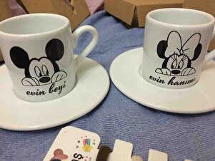 Mickey Mouse 2'li Evin Hanımı-beyi Tasarımlı Türk Kahvesi Fincanı Mickey Mouse 2'li Evin Hanımı-beyi Tasarımlı Türk Kahvesi Fincanı MCKFN1 تک سایز