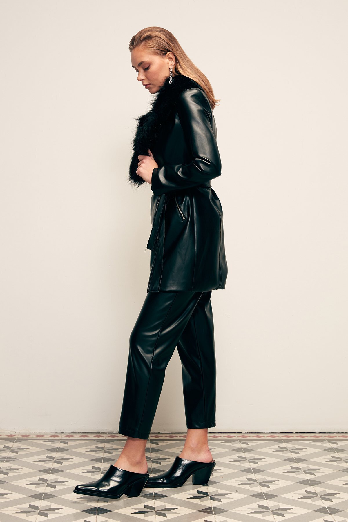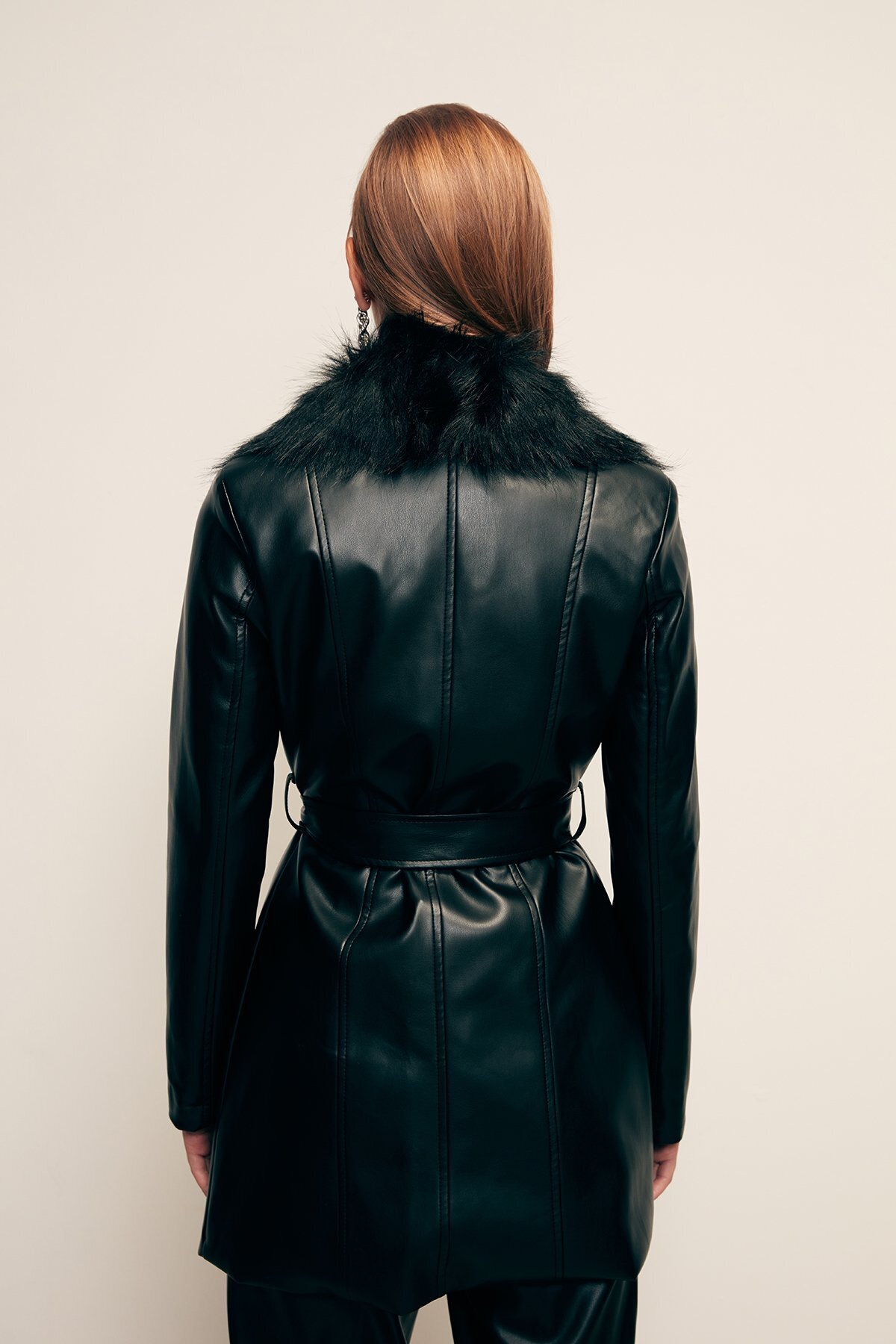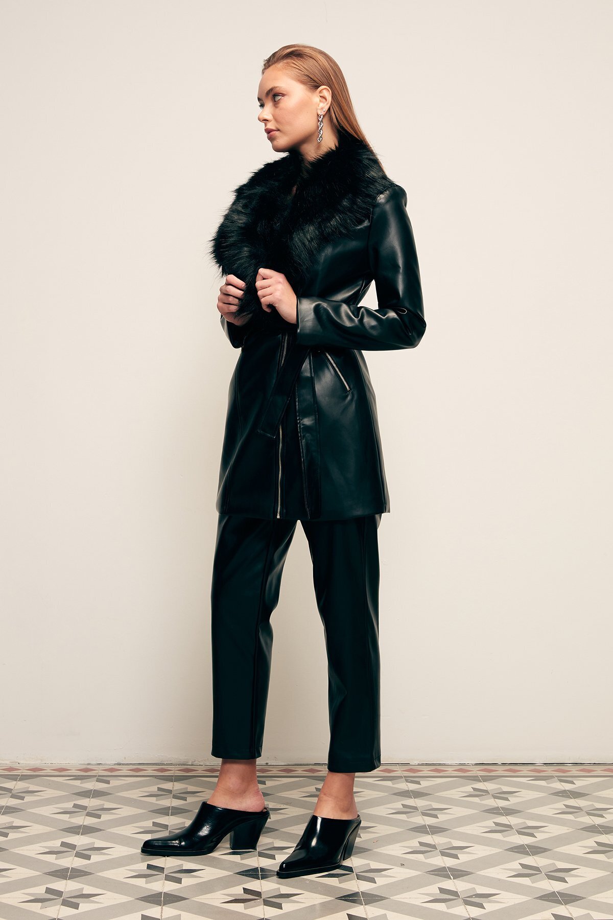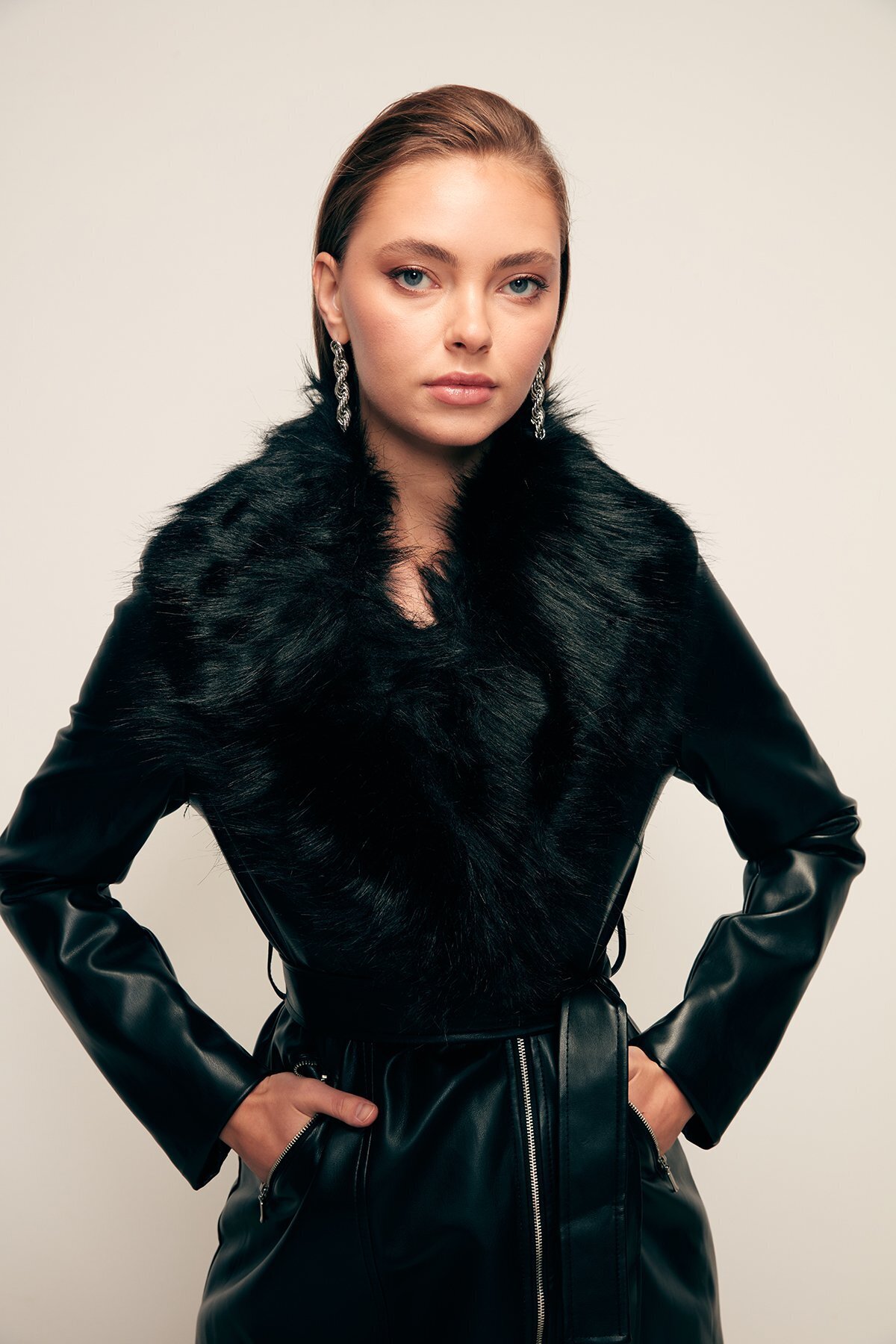 Kürk Detaylı Deri Ceket - Siyah Kürk Detaylı Deri Ceket - Siyah STN139KCE2058 42