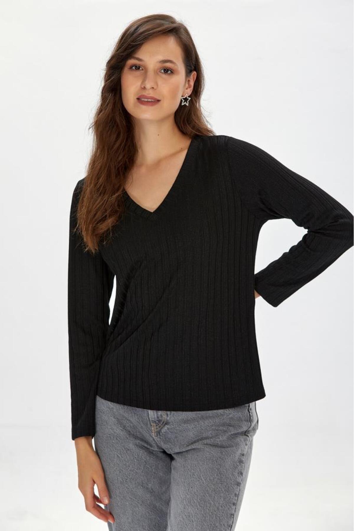V Yaka Eteği Aksesuarlı Uzun Kol Bluz 234-1710 V Yaka Eteği Aksesuarlı Uzun Kol Bluz 234-1710 2XL