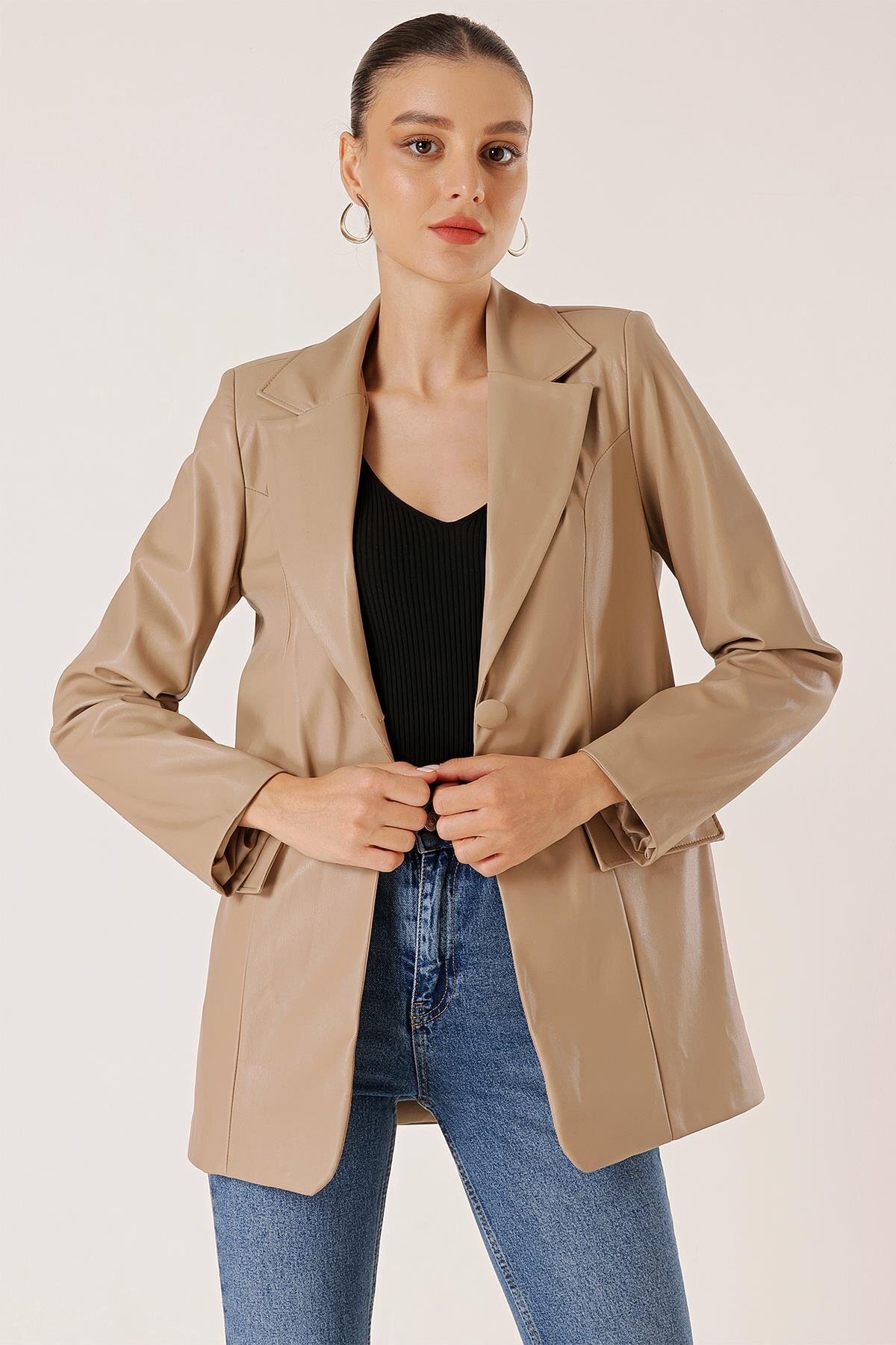 Çift Düğmeli Sahte Cepli Astarlı Deri Ceket Çift Düğmeli Sahte Cepli Astarlı Deri Ceket S-23K4200002 XL